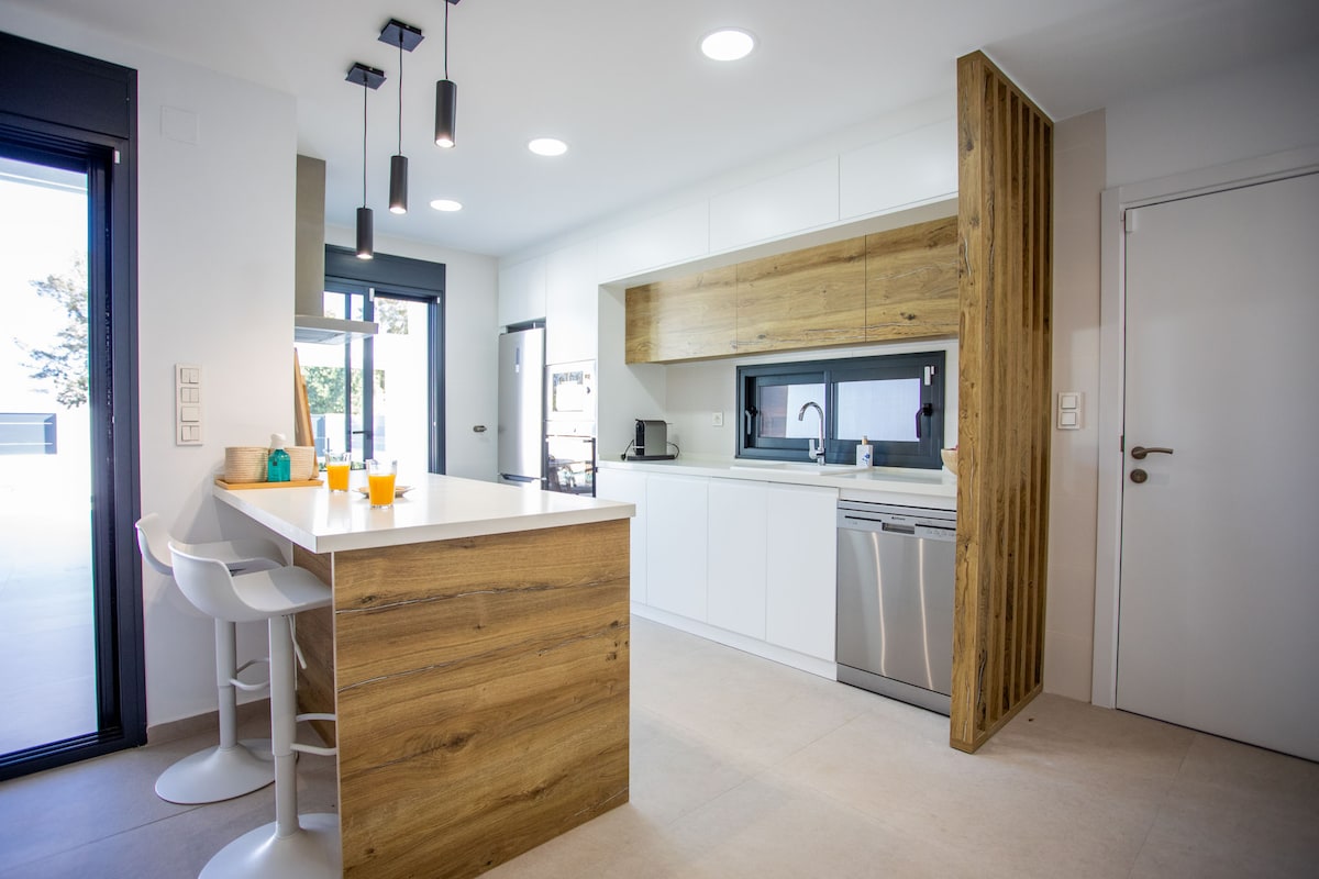 What makes our accommodation special: - Private outdoor jacuzzi ( only for you, heating possible 3h, until 23:00 ) - Private sauna ( Harvia wood burning heater ) - King size bed - 100% solar house - Come and spend your vacation in nature - The best sauna HARVIA (wood-burning) - BBQ ( gas ) - Double bath inside - Our house is pleasantly warm even in winter - Near Alicante - Close to Alicante airport