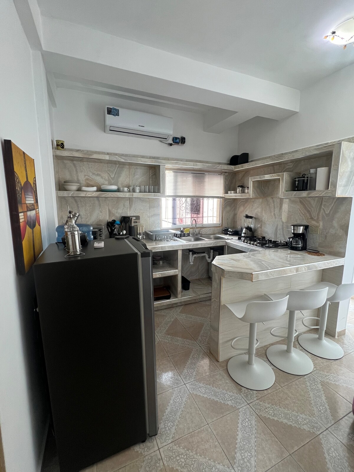 Bienvenidos a la ciudad Musical de Venezuela… Desde este alojamiento céntrico todo el grupo podrá disfrutar del fácil acceso a todo, a 5 min del aeropuerto, a 5 min del centro y a 5 min de la zona industrial. Tranquilo y acogedor, podrás descansar y realizar tus diligencias muy fácilmente. Tiene 2 habitaciones. La principal con baño. Un baño en el pasillo. Cocina, sala y comedor. Agua caliente, servicio de wifi y TV por cable. Cualquier duda comunícate a través de chat
