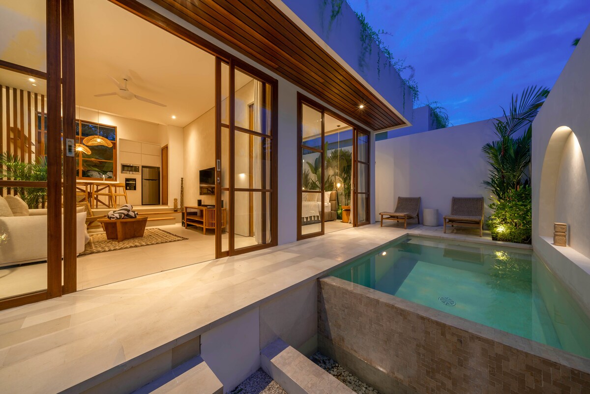 Escape to our Brand New 1 BR villa with private pool in superb location in the heart of Canggu, This is the perfect villa for couples or solo travelers who loves to explore famous spot in Canggu. Just 3-5 walk to great Restaurant, Shop, Gym, CoWorking, Pilates, cafes & Bars. It is just few minutes from famous beaches like Nelayan, Batu Bolong, Canggu Beach, This villa features a luxurious king bed, ensuite bathroom, kitchen, pool, living room, and open living spaces to relax by the private pool