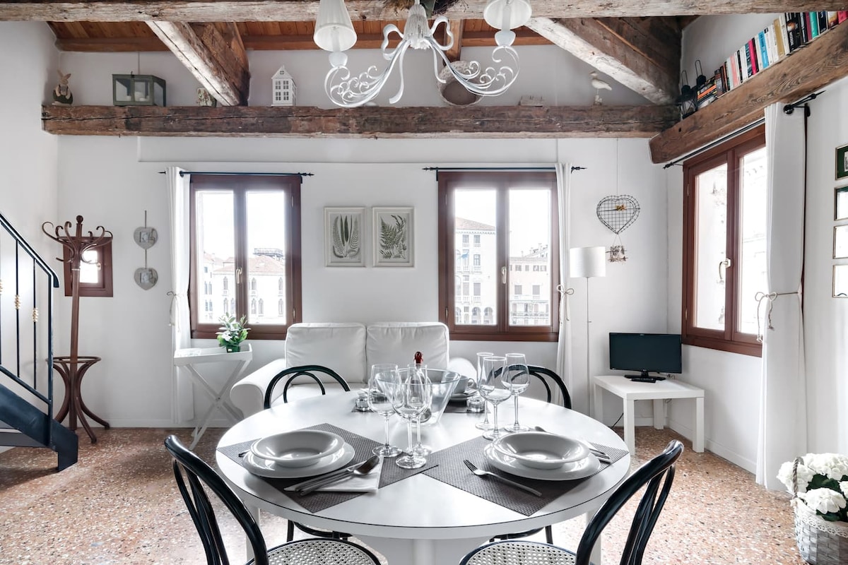 A loft sophisticatedly furnished down to the last detail and embellished with wooden ceiling beams that give the setting its very warm and elegant atmosphere. Well-equipped and quiet, you can savor Venice's beauty while feeling a bit Venetian, yet living within walking distance of all conveniences such as shops, cafés, supermarkets, and points of interest such as the Church of the Madonna dell'Orto, Ca d'Oro, the Rialto Bridge just a ten-minute walk away, and much more...