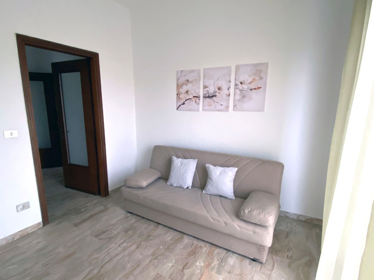 Accogliente appartamento dotato di tutti i comfort. È dotato di aria condizionata, smart TV 32" con account Netflix, WI-FI, asciugacapelli, lavatrice, stendibiancheria, ferro e asse da stiro. Al vostro arrivo vi attende un ricco Welcome Kit di cortesia e un set completo di asciugamani in soffice cotone 100%. In cucina troverete forno elettrico e a microonde, bollitore, tostapane, macchina del caffè Nespresso con cialde a vostra disposizione, set completo di pentole e stoviglie.