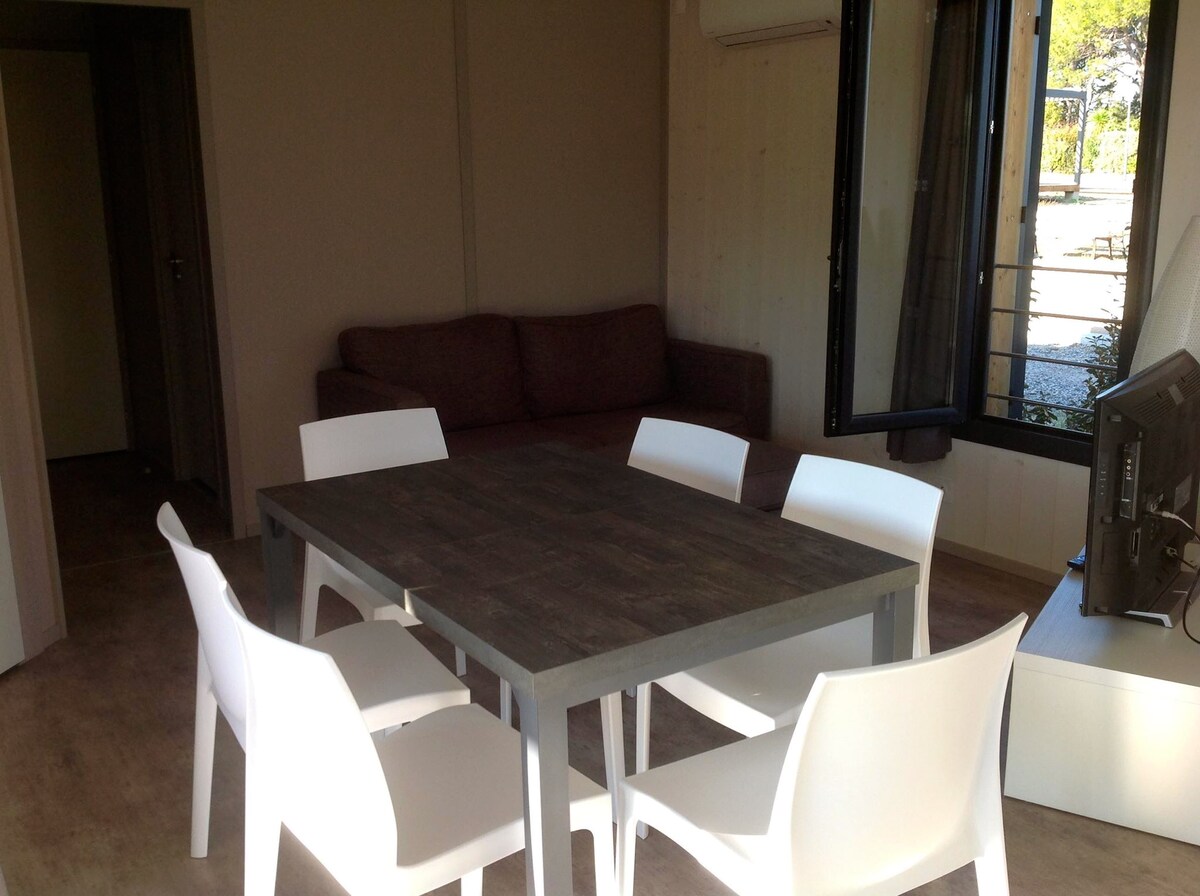 Chalet pour quatre personnes, climatisé, situé dans la résidence "Les Pescalunes", sur le flanc du Mont Saint-Loup à Agde. Au cœur d'une pinède ombragée, la terrasse du chalet offre une magnifique vue sur la Méditerranée et l'étang de Thau. Le domaine, entièrement piéton, garantit des vacances reposantes et sécurisées. Les voitures sont autorisées à entrer uniquement pour le déchargement des bagages et des courses. Un grand parking gratuit est situé devant la résidence.