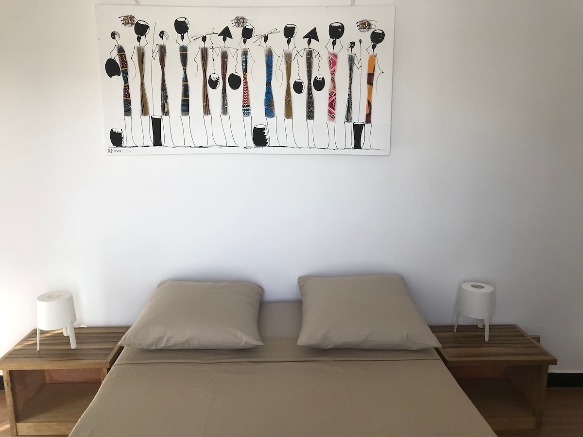Un studio de charme aux influences africaines et orientales, niché sur une île paisible, à seulement 8 minutes de Dakar et à 50 mètres de la plage. Ce studio climatisé, à la décoration soignée et chaleureuse, offre : • espace nuit confortable • salle de bain • jardin tropical privé, véritable havre de paix • cuisine extérieure personnelle, idéale pour profiter pleinement du cadre naturel Enfant gratuit jusqu’à 5 ans Un bateau privé avec skipper, disponible jour et nuit