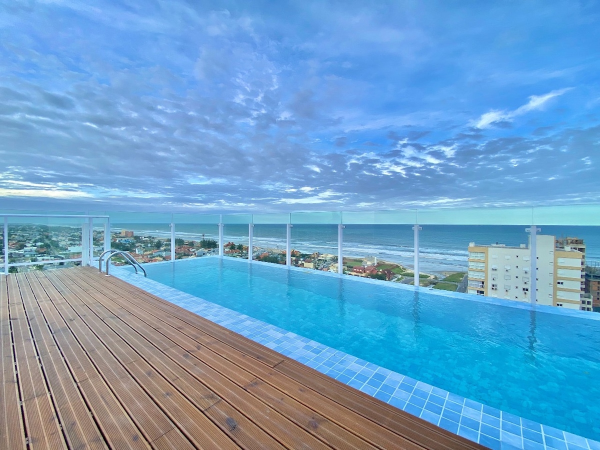 Residential building Dubai in Capão da Canoa, near Luiz Bassani Square, next to the new boardwalk, near Santinha Street, Av Ubirajara, navigating district, prime area, near the sea. High standard building with complete infrastructure, heated adult and children's pool, games room, gym with bathroom, party room with barbecue and fireplace, decorated lobby, and with toilet. High standard of construction, class A finish. Great for you to spend your vacation.