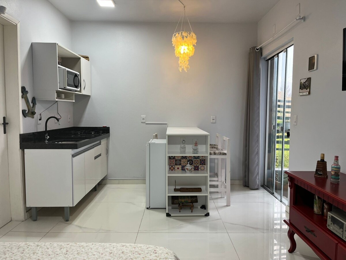 Relax in this calm and stylish space, 1-bedroom apartment with bathroom and parking, complete, no need to bring anything, Wi-Fi, coffee maker, smart TVs, washer and dryer, queen-size bed, towels and bed linen, etc... Wonderful apartment in Navegantes, with a terrace in the building overlooking the sea, mountains and lake for that day's leisure. With a gym and Rooftop access. No!!!! Reservations are not allowed, nor is the use of the SPA and Party Room for tenants !!!!
