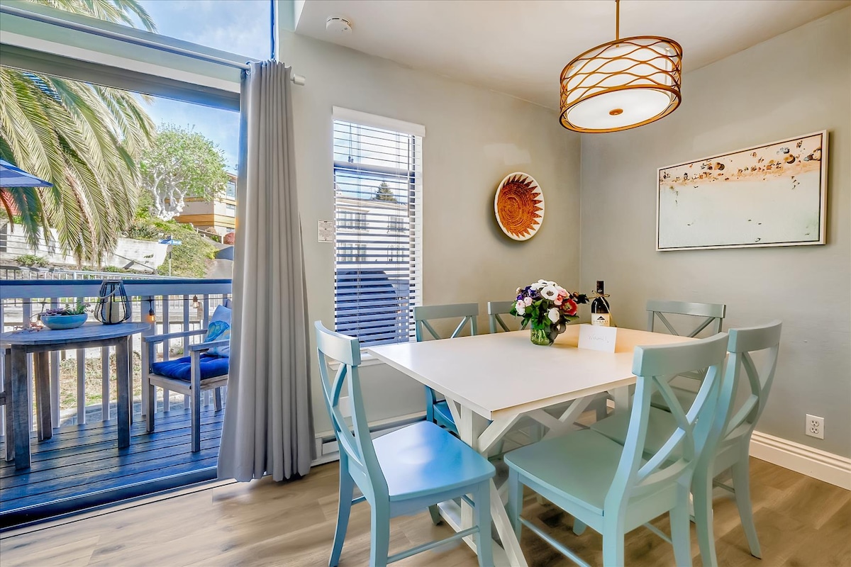 Recently renovated with hardwood floors & appliances. Spend your next beach getaway in the heart of the Capitola Village, a 3 minute walk to the beach, restaurants & shopping. This lovely 2-bedroom, two story house has a private balcony w/a BBQ & sleeps up to 6 guests. Level 2 EV charger in garage. Convenient Amenities Include: *Self check-in *Wireless Internet *Dog Friendly - 1 dog (40lbs +/- max) *Parking for 1 car in the attached garage (w/EV Charger) *Roku TV with Netflix, Disney+, YouTuber