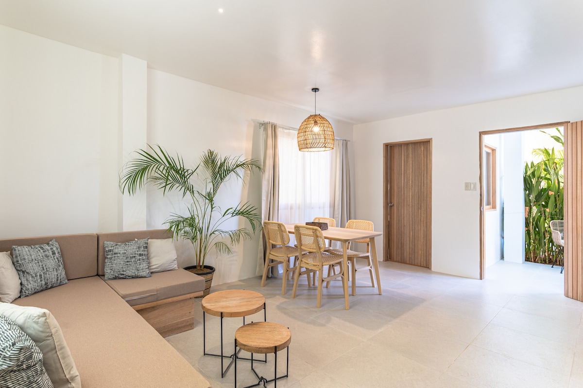 Comfort meets island vibes in our 2BR apartment in General Luna. Near iconic Cloud 9 surf spot, enjoy amenities like Starlink internet connection, AC in each room and a 55" smart TV with Netflix. Savor meals in a spacious dining area, enhanced by a well-appointed kitchenette. Enjoy palm views and dive into Siargao's vibrant culture. Beaches, local dining, and lively spots are all nearby. Ideal for groups or families, our second-floor apartment offers an elevated retreat with easy stair access.