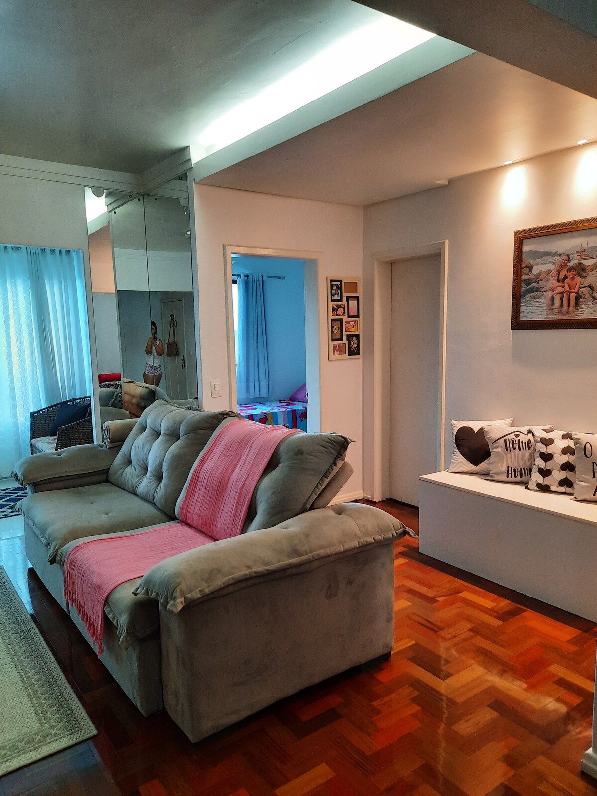 Enjoy easy access to everything you need, banks, supermarket, pharmacies, in this very well-located apartment. With a large bedroom, it accommodates 1 couple in the double bed and one more person in a single bed. There is also a sofa with chaise in the living room. Furnished and with all kitchen, bed and bath utensils. Parking is covered. Accessed via 4 flights of stairs, without an elevator. WE ONLY ACCEPT RESERVATIONS THROUGH AIRBNB.