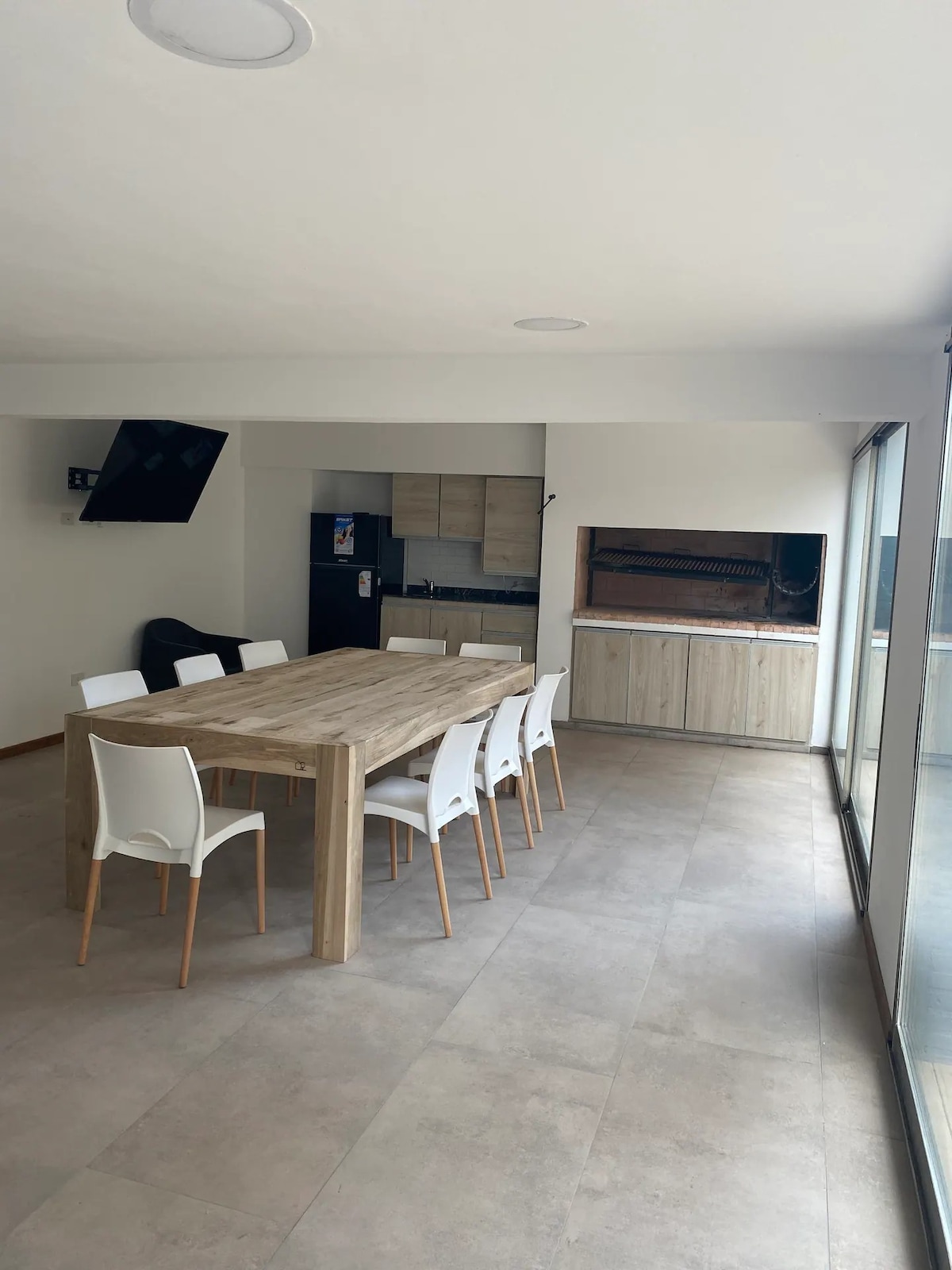 Modern and functional apartment. Ideal for students and tourists. In downtown Pinamar, a safe area with activity all year round. Surrounded by supermarkets, pharmacies and restaurants. 🛏️ Comfortable for rest and relaxation 🚗 Covered garage 📶 Fast WiFi 🔥 Grill on the balcony-terrace 🧺 Washing machine 🧼 Linen included 🏊♀️ Amenities: pool, sauna, gym and microcinema 📍5 min from the sea, 5 min from UADE and 3 min from the bus station DISCOUNTS ON WEEKLY STAYS (SUNDAYS TO SATURDAYS)