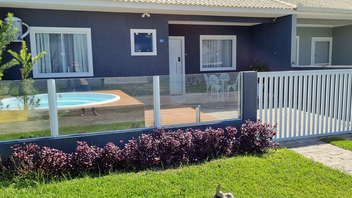 The house is cozy, airy, and thoughtfully prepared so your stay is practical and worry-free. ✅ Private pool just for you ✅ Covered barbecue area ✅ Air conditioning in the bedrooms ✅ Wi-Fi available ✅ Smart TV with streaming ✅ Fully equipped kitchen ✅ 2 parking spaces ✅ Clean and well-kept home ✅ Quiet, family-friendly neighborhood ✅ 900m from the beach Perfect for couples, small families, or remote work. Arrive, relax, and enjoy!