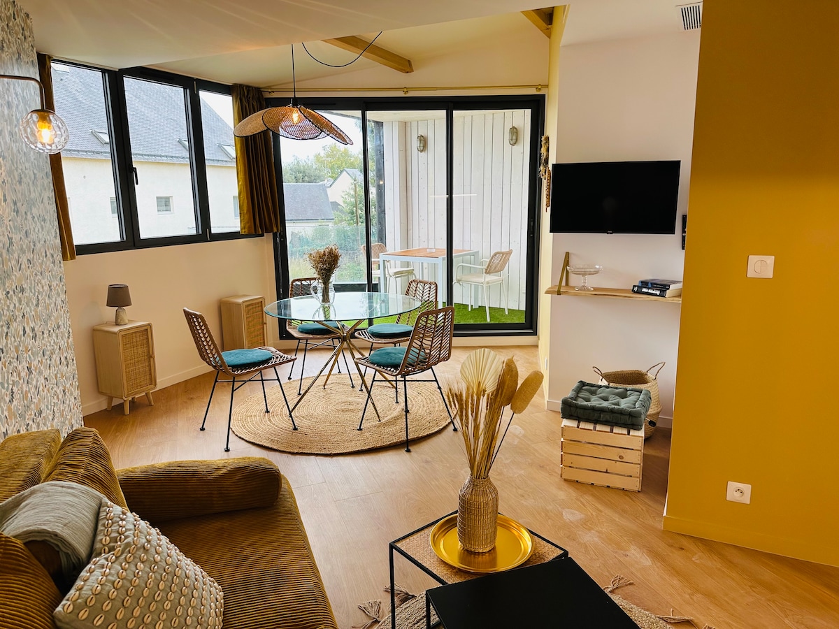 Come and put your suitcases in this lovely quiet apartment 300 m from the beach, ideal for couples or families. Enjoy a private garden, bicycles available to explore Carnac for a car-free stay! One bedroom with double bed (Queen size: 160 x 200) and TV A bedroom with sofa bed (140 x 190) and, ABOVE, a mezzanine bed (9 x 190) reserved for children from 6 to 12 years old. * 2 adult bikes (1 men's mountain bike & 1 women's mountain bike) with baby carrier available free of charge * WIFI *
