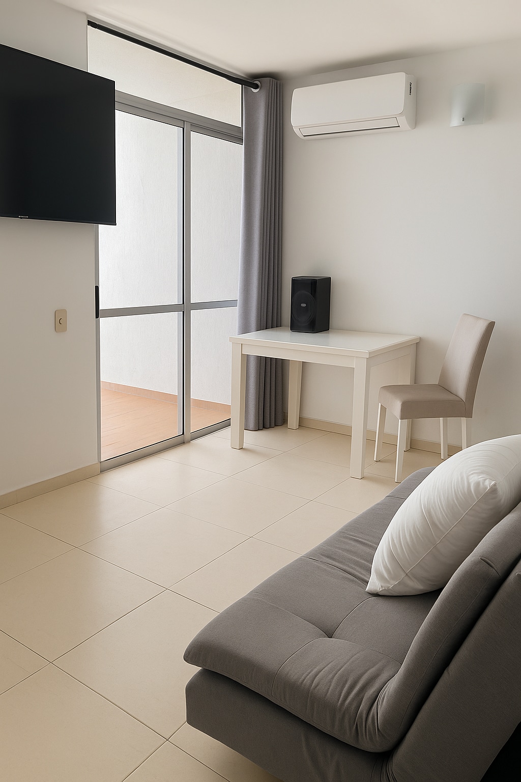 Aparta-Suite on the 9th floor of the exclusive Cartagena Beach building, equipped with everything you need for a wonderful stay in Cartagena. Enjoy Wi-Fi, direct views of the lagoon and airport, and beautiful sunsets. Walk along the park and beach, or exercise with dance and aerobics in the linear park. Surrounded by shops and just 2 minutes from Rafael Núñez Airport. The building is still under construction, so common areas are not yet available.