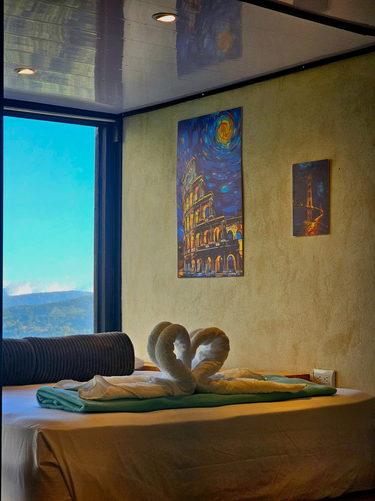 Imagina despertar con el canto de las aves. Nuestro hospedaje es un refugio privado para vos y tu persona favorita, donde puedes iniciar tu día decidiendo entre un café en la terraza o la calidez de tu pileta privada con vistas panorámicas al Volcán Turrialba. Este acogedor estudio, ideal para parejas, invita a reconectar. Aunque el entorno te llama a la desconexión, tienes cocina completa, TV y WiFi para tu comodidad. Es tu base para recargar energías en una experiencia auténtica.