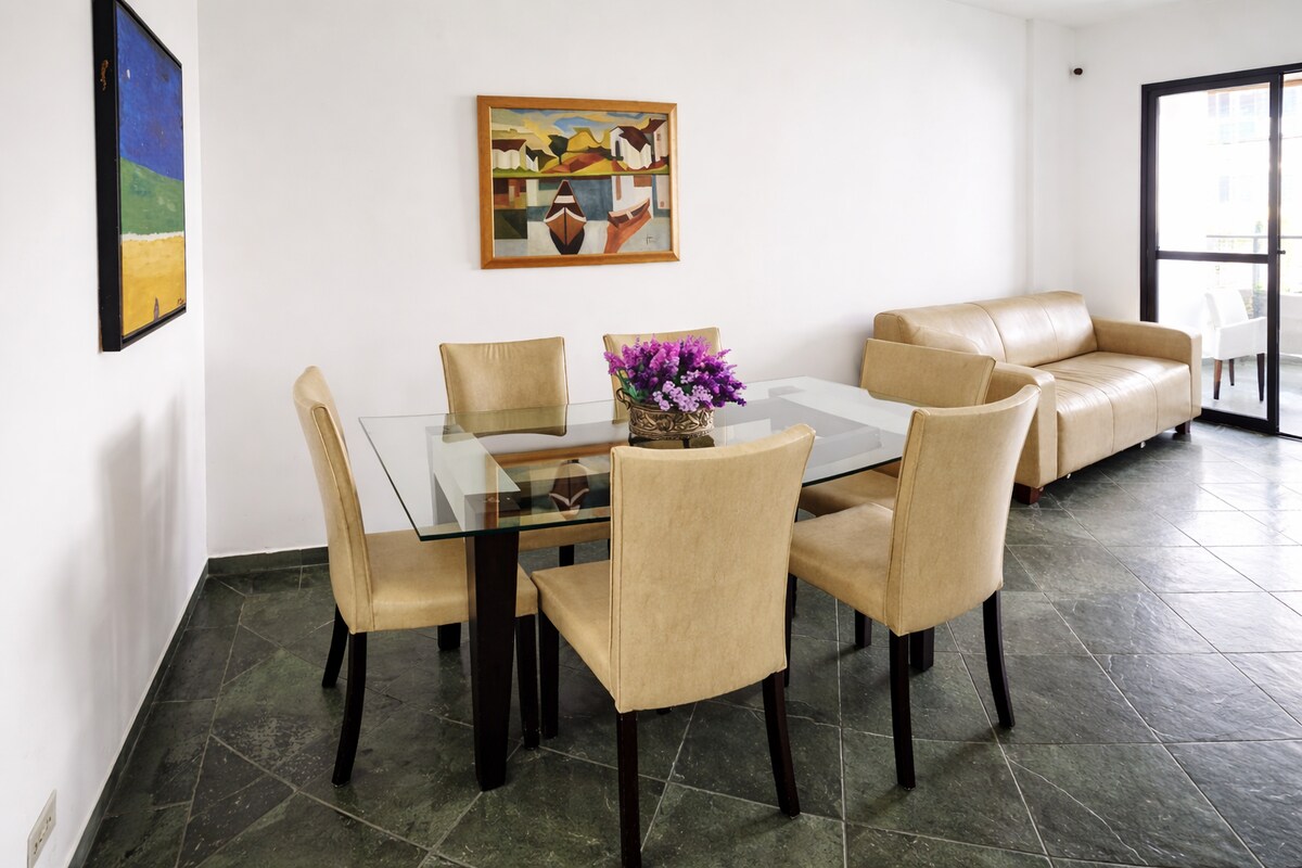 Beautiful renovated apartment on Pitangueiras Beach, Guarujá, with full sea frontage. Maximum 9 people, including children. Located in the best part of Pitangueiras, you can do everything on foot. 250 mbps Internet - Wi-Fi, Netflix. 4 bedrooms, 3 bathrooms, 1 suite. Large balcony. 55” Smart TV in the living room. Smart TV in the bedroom. Garage for one car Kitchen utensils, water purifier, rice cooker, sandwich maker, blender, toaster. 160 meters from La Plage shopping mall.