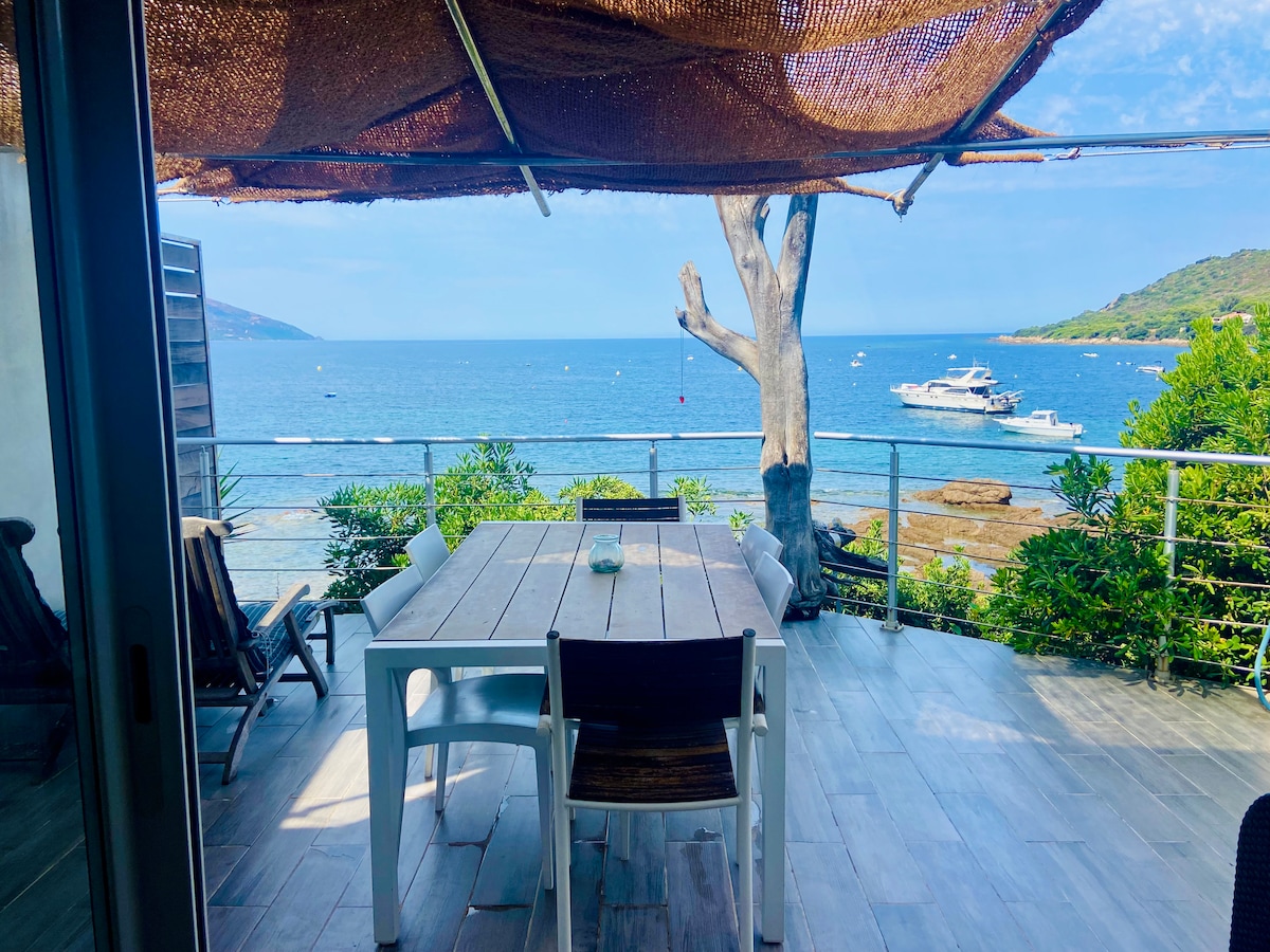 Studio in private property without road nearby, 10 meters from the sea, 20 minutes from Ajaccio. 28 m2 with terrace, sea view and barbecue. Access road to the cove. Equipped kitchen, reversible air conditioning, parking at the foot of the rental.