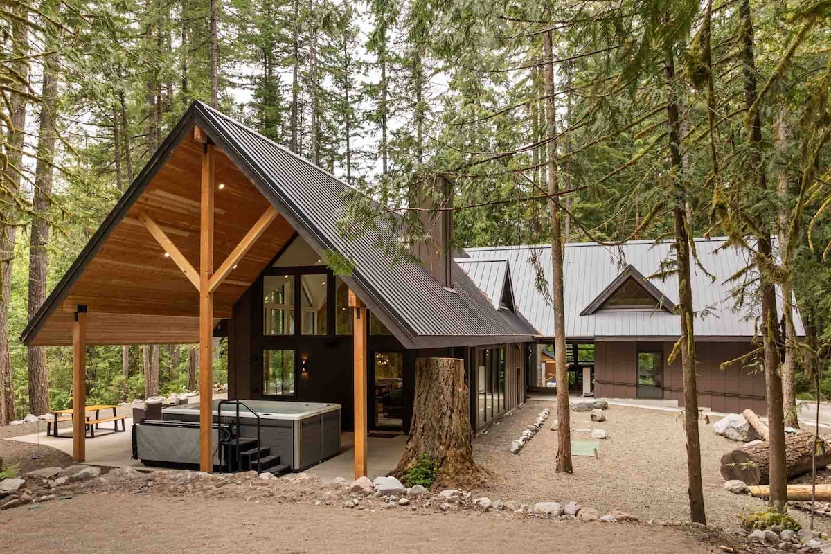 Welcome to the Spotted Dog Lodge, a luxurious new custom-build retreat nestled in the heart of Rhododendron, Oregon—where timeless mountain charm meets elevated Pacific Northwest design. Surrounded by towering pines and just steps from the serene Zig Zag River, this five-bedroom escape is only nine miles from the slopes of Government Camp, making it the perfect year-round base for adventure and relaxation.