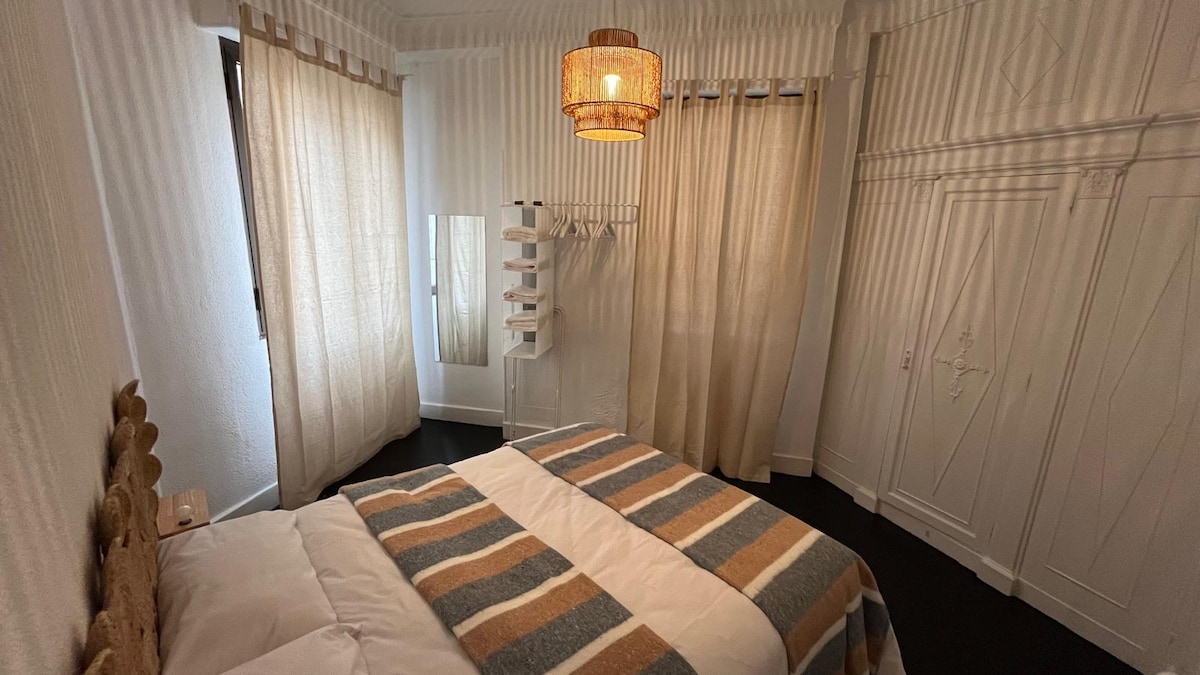 Coqueto apartamento situado en un barrio muy tranquilo a 2 pasos del Casco Viejo. El apartamento cuenta con 2 habitaciones con cama de matrimonio, una con ventana a la calle y la otra con ventanas a patio. Una salita con cocina americana y un balconcito. El cuarto de baño es amplio y el inhodoro está aparte. Nos hemos desvivido por presentaros un refugio luminoso y acogedor, arty y con encanto, apto para familias con niños, parejas y amigos. Aparcamiento gratuito fuera de las instalaciones.