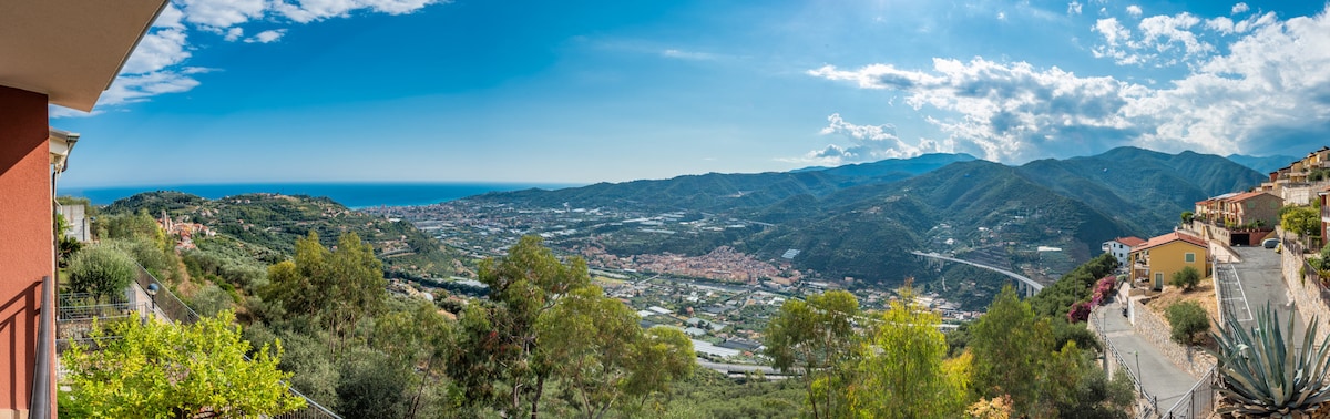 Sulla collina sopra il piccolo paese di Cipressa, a 3 km dalle spiagge di San Lorenzo e Santo Stefano e dalla pista ciclabile, l'alloggio è la dependance di un villino con una vista mare unica. E' la soluzione ideale per trascorrere una vacanza indimenticabile lontani dalla confusione, prendendo il sole sulla terrazza e facendo bellissime passeggiate guardando il mare.