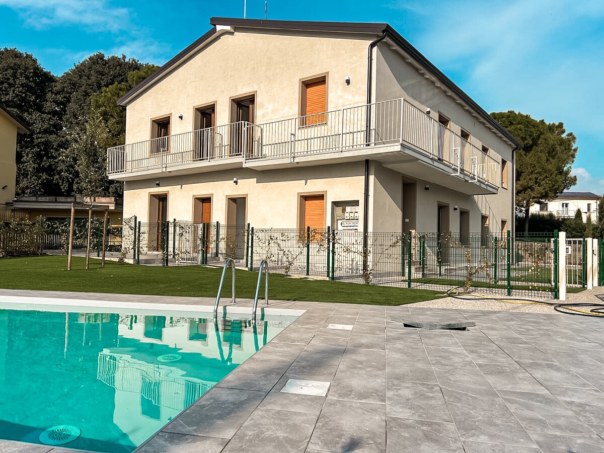 Welcome to Borgo del Lago, an exclusive residence with only four spacious apartments, where modern comfort meets the historic charm of Castellaro Lagusello. Located at the entrance of the medieval village, this unique setting is perfect for families, groups of friends, and couples seeking relaxation and an authentic Italian atmosphere. Unwind by the pool or explore Lake Garda (10 min away) and the Mincio cycle path.
