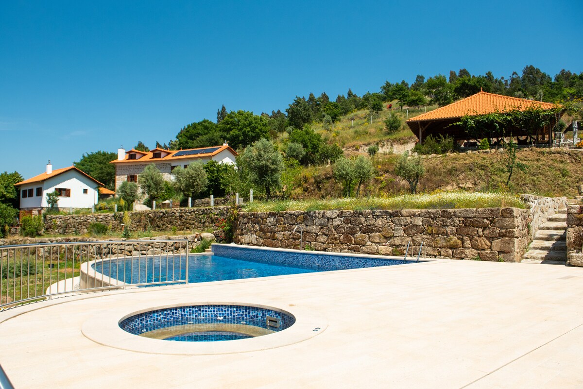 Inserida numa aldeia de xisto, casa com todas as comodidades e muito acolhedora. O que vai ouvir por aqui é apenas o riacho que passa perto da casa e o chilrear dos passarinhos. Perto das várias praias fluviais. O terraço dispõe de churrasqueira e jacuzzi com água aquecida e exclusivo da casa. Lareira na sala. Máq roupa, forno, fogão, microondas, chaleira, tostadeira, frigorífico, congelador, máq café, termo acum, aquecedor de toalhas... A 30 minutos de Piódão e a 1h.30m da Serra da Estrela.