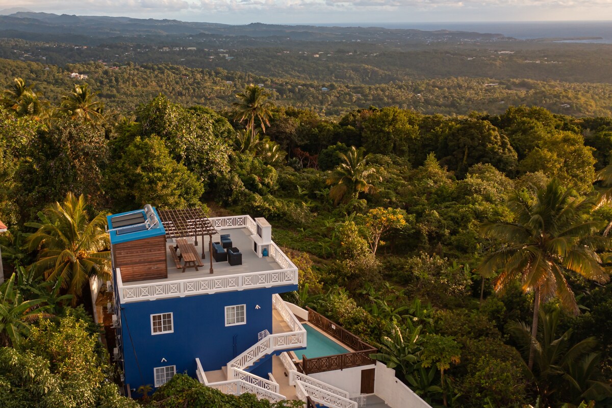 Our newly constructed property sits high above the tree tops in a quaint village amongst locals. This 1-br provides immediate access to a pool, balconies to soak in the fresh sea breeze, and a rooftop terrace with open air seating, fireplace and TV overlooking the lush, tropical foliage all the way to the ocean. We are located just 10 mins from Hewanorra Intl Airport (UVF) and a short drive to beaches, restaurants and the top attractions in the southern part of beautiful St. Lucia.
