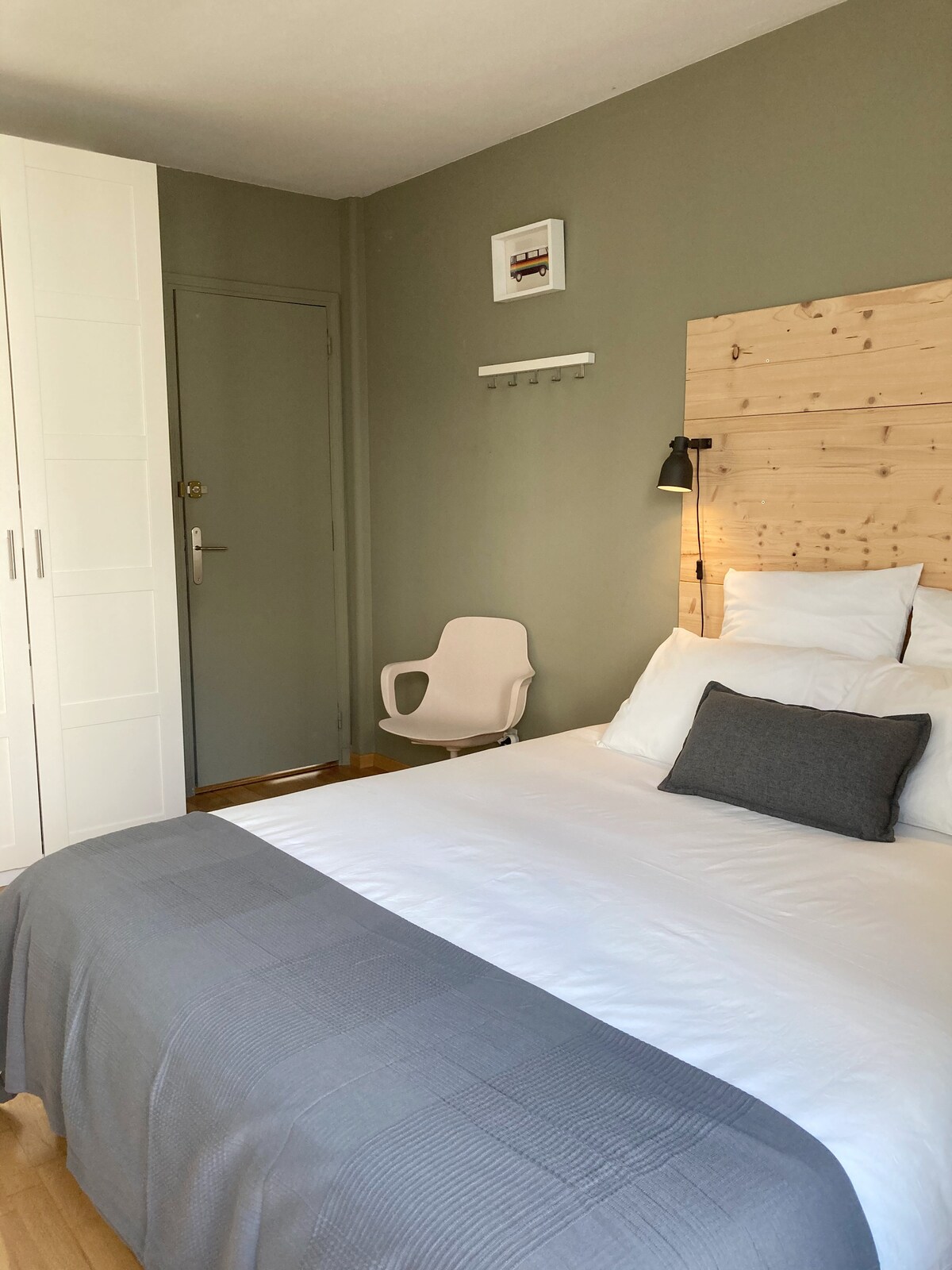 Loft in the hypercenter of Rennes. Ideally located in the heart of the city, you can get everywhere on foot! 2 minutes from the artisan shops of Rue Saint-Hélier, 3 minutes from the train station, 5 minutes from Les Halles, Rennes bars and restaurants. Tastefully furnished loft, large living space on a half-level with beautiful ceiling height. Kitchen equipped with new appliances. Large bathroom with bathtub. 2 spacious bedrooms with double beds, one with a desk.
