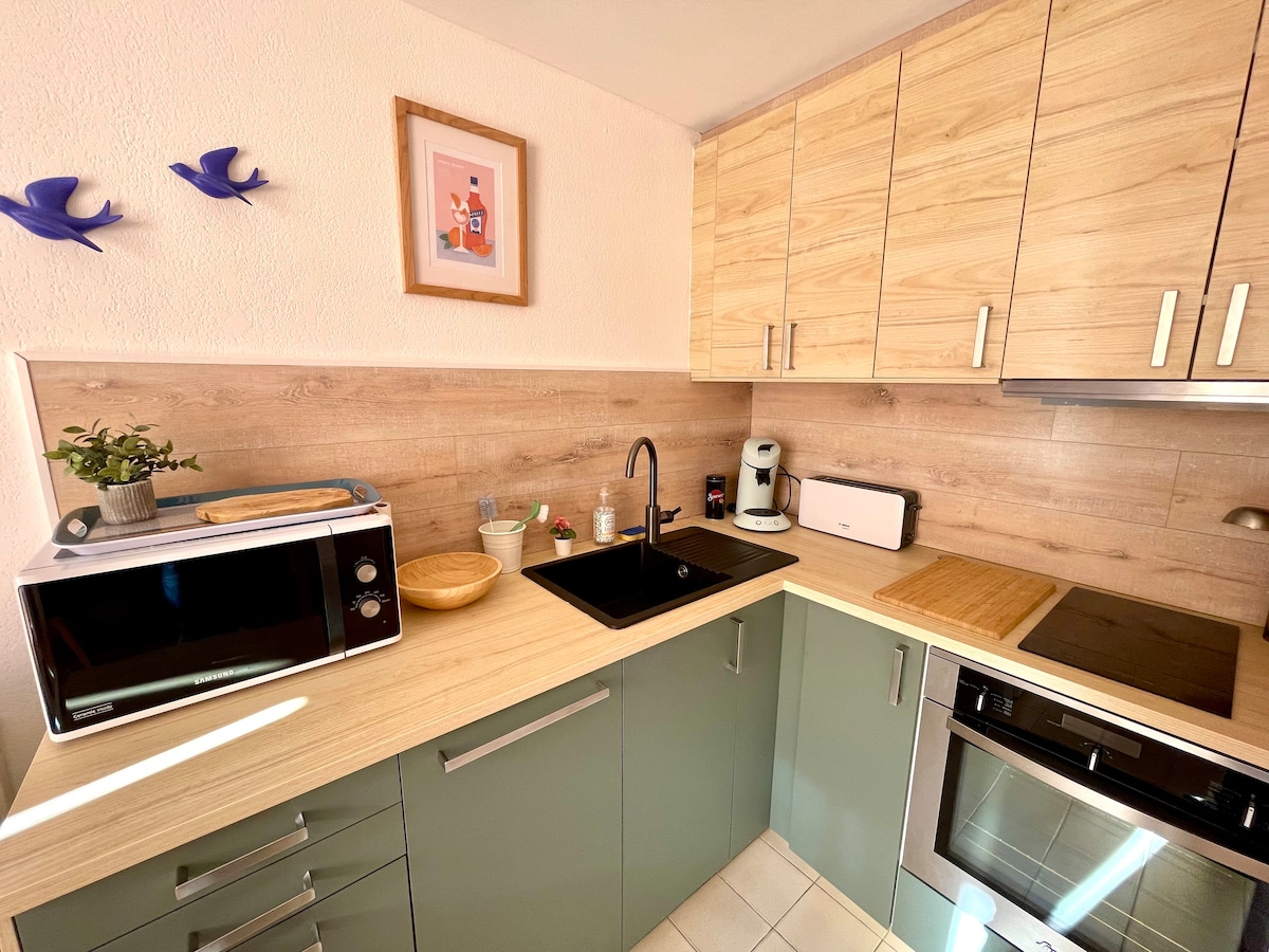 Discover our waterfront apartment on the promenade. Amazing sea and beach view and sound of waves from the living room, kitchen, bedroom and its 12 m2 furnished balcony. Apt on the 1st floor with private parking space. It is equipped with all modern equipment for your comfort as well as reversible air conditioning in the bedroom and living room, warm decor, close to the city center within walking distance. Various restaurants on the ground floor, snacks, bakery nearby.