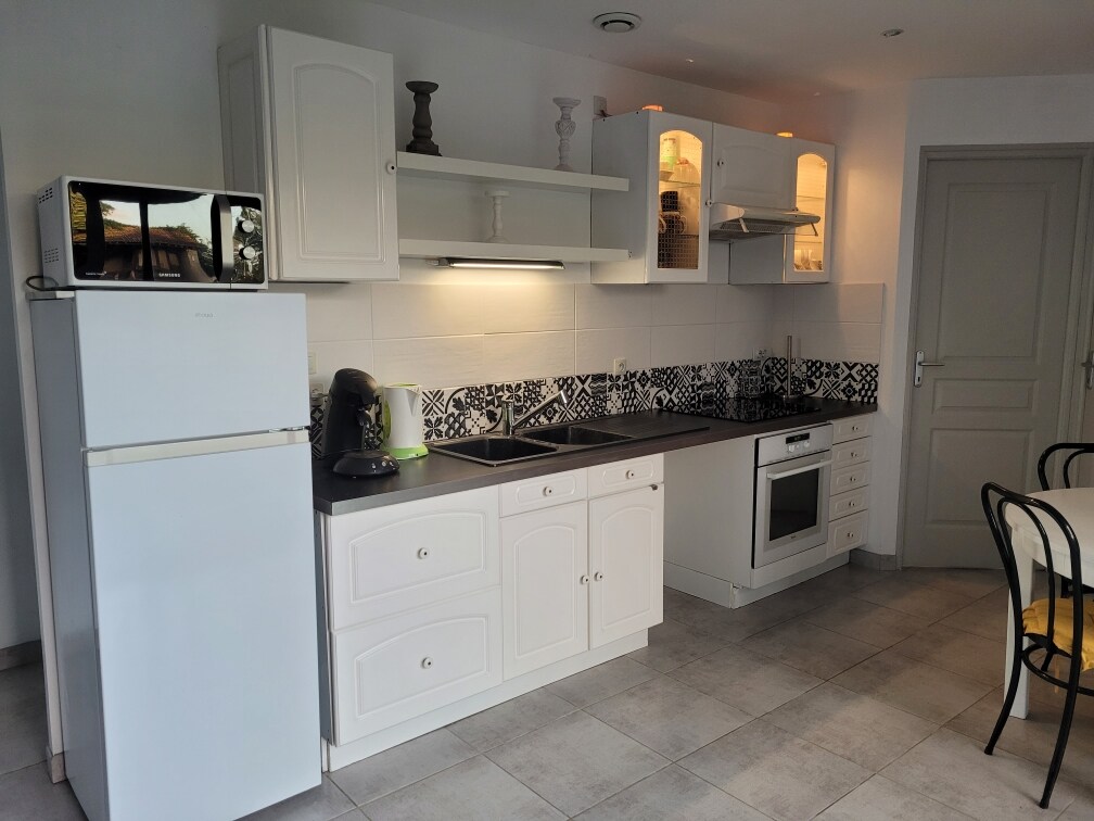 A louer, maison de 60 m², avec cour fermée et parking extérieur, face au gîte. 1 pièce de vie au rez de chaussée avec cuisine, salon, cheminée. 1 salle d'eau au rez de chaussée A l'étage, 2 chambres en enfilade, une première chambre parentale avec un lit double 160x200. Au fond, une chambre d'enfants avec deux lits simples 120x190 et 90x190. C'est une maison qui allie le confort des équipements modernes et le charme des vieilles pierres . Chauffage poêle à bois et radiateur électrique.