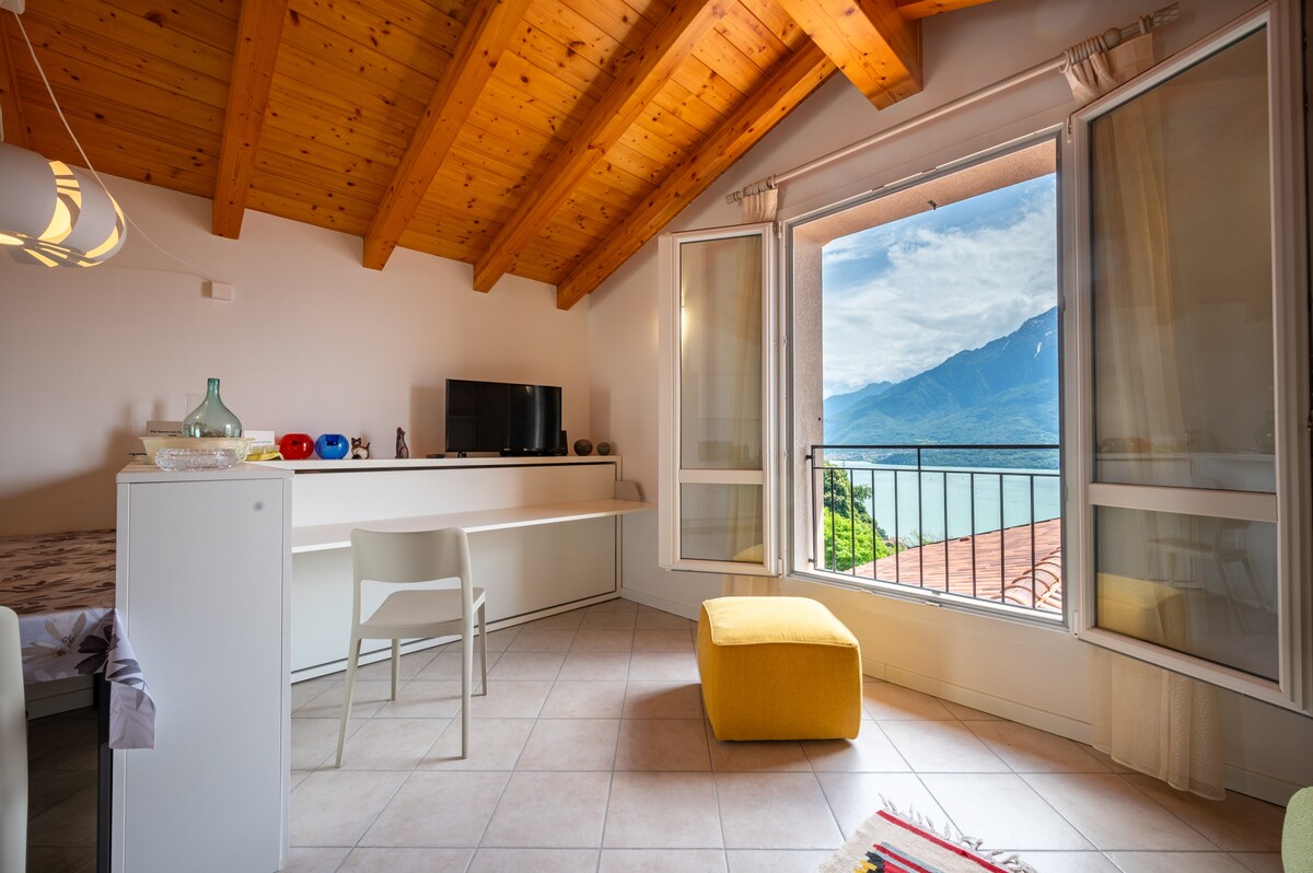 Recently renovated with an antique wooden attic. Large and cozy, with panoramic lake views and a bedroom on the mezzanine. For heating, we have a nice cast iron wood-burning stove, which is easy to light and immediately creates a warm and romantic atmosphere! Essential kitchen with microwave, American coffee machine, satellite TV. Tavern with vault and fireplace.