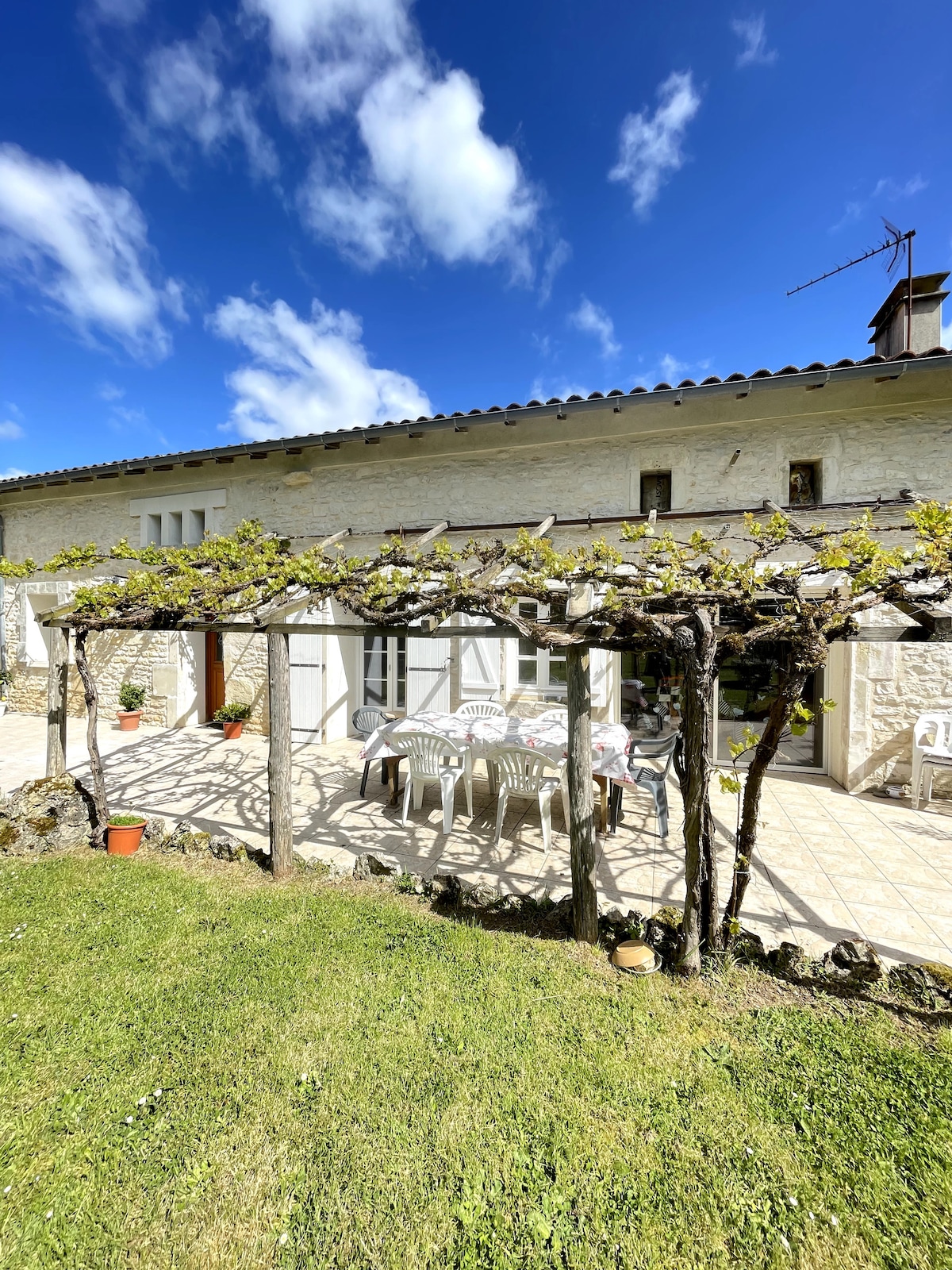 Single-story accommodation, located in a small village in Charente. Come and recharge your batteries in the great outdoors in our cozy home. It is a traditional Charente home, completely renovated and comfortable. Ideal place for families or groups of friends, in a quiet and relaxing setting. You will enjoy both the interior and the exterior thanks to a large terrace (35 m2) shaded by the vine as well as a maintained and fully fenced garden of more than 900 m2 and not overlooked.