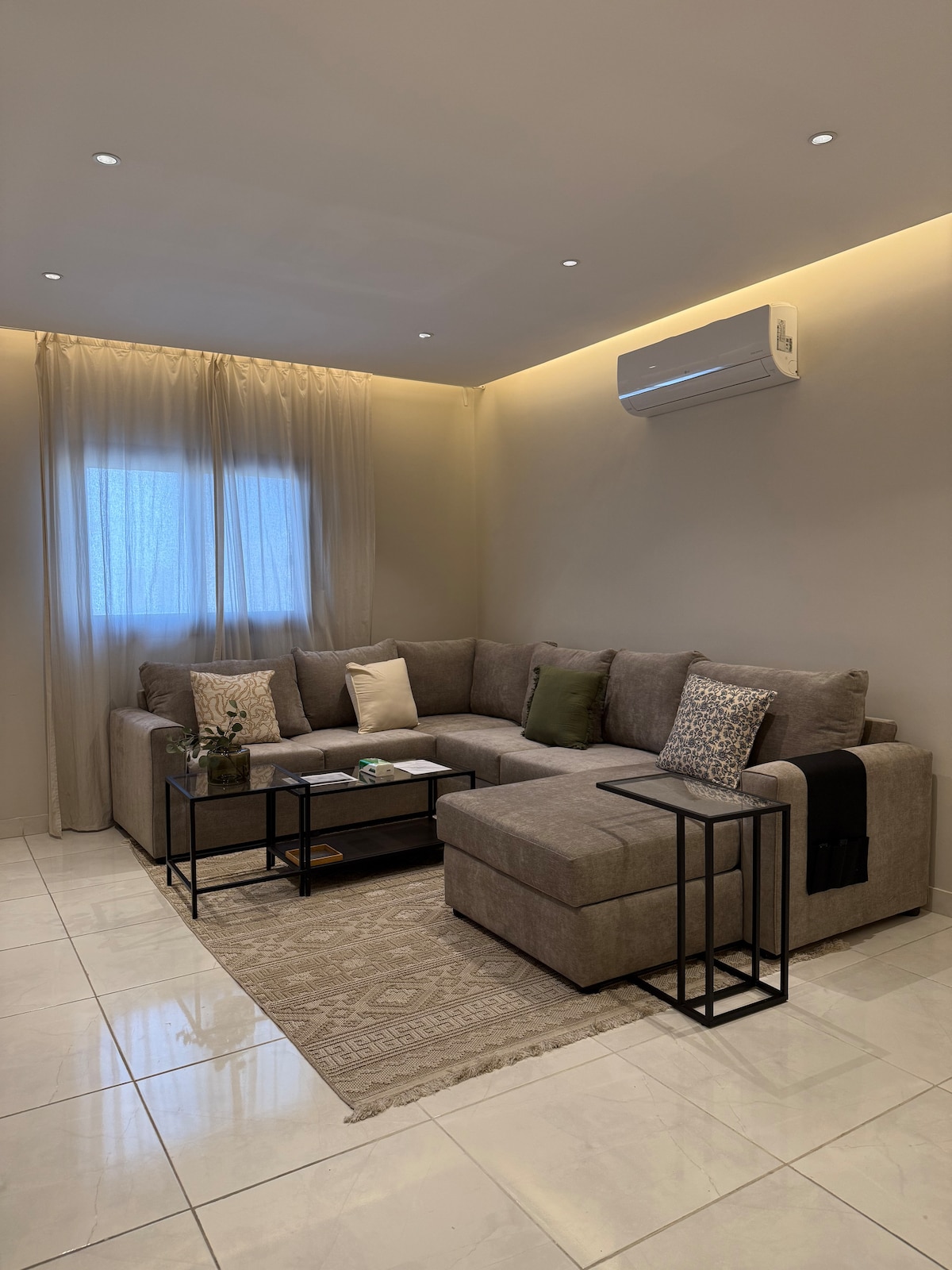 Enjoy an ideal and quiet living experience. This one-bedroom apartment with a living room and dining area is designed with modern furniture, located in the heart of Jeddah, near Harrah St. and Prince Sultan St. It is notable for its location adjacent to numerous shopping centers, markets, and public services. Additionally, it offers complete privacy and smart entry. ultra-fast 5G fiber internet, smart TV 85 insh to watch the latest TV shows, and a kitchen equipped with essential tools.