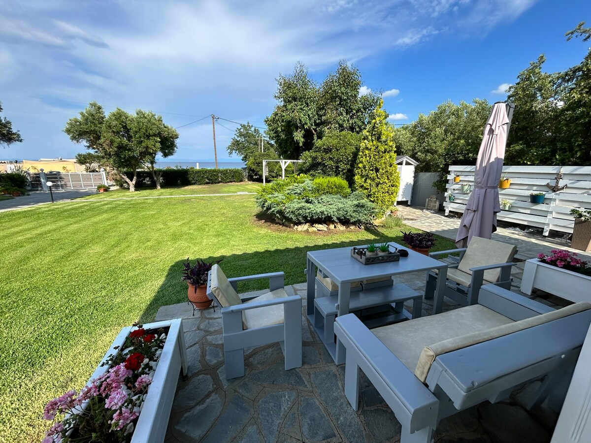 Just a few steps from blue flag awarded Trani Ammouda beach in Sithonia, with view to Mount Athos and within 5 minutes by car to Ormos Panagias and Agios Nikolaos Village, H&V beachfront house is an ideal place for your family vacations.