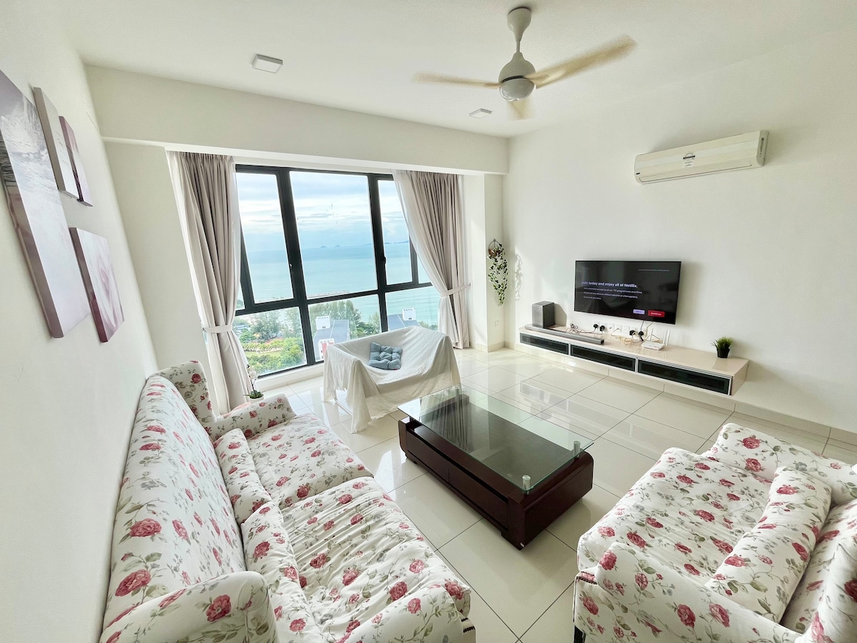 Free WiFi, equipped with smart lock, water heater, air cond, microwave and water filter that can drink hot and cold water immediately. Free 2 parking places as well. Very near to Karpal Singh, 5 minutes to Georgetown with great seaview and cityview. You will be able to see the Penang bridge, seaview, Komtar from this unit. Located at 36th floor as well. If you need anything, can chat me, because I stay just nearby.