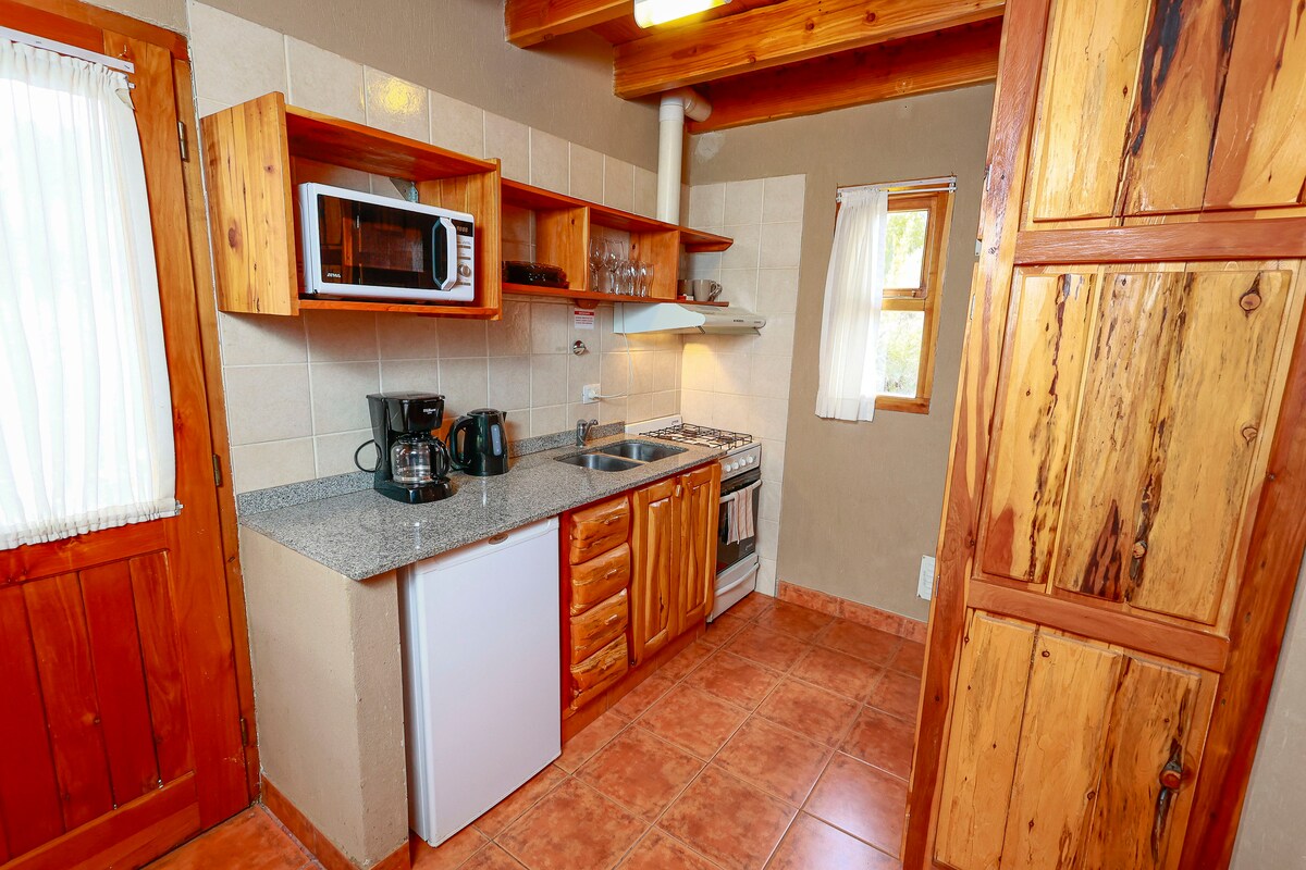 A warm, rustic-style cabin on the shores of Lake Nahuel Huapi with a hot tub, wood-burning fireplace, and deck. A studio created for relaxation and romance with a view of the sunrise and moonrise over the lake. Smart TV and FIBER OPTIC internet with WiFi for working. A kitchenette with everything you need, including a Dolce Gusto coffee maker. A safe to protect your notebooks when going for a walk. Full bathroom. Pool, ping-pong. Beach: Kayak and standup paddle. Continental breakfast.
