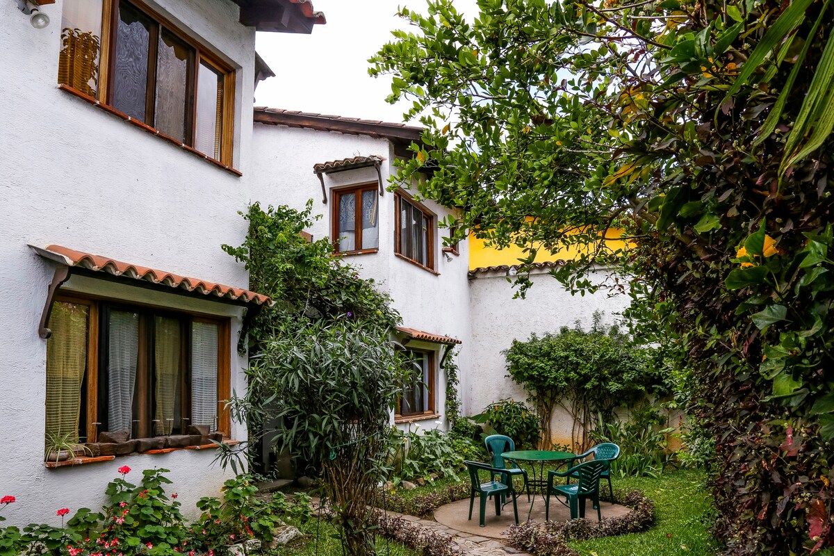 A Hidden Oasis 4 blocks from the Central Park. There's no place like this in Antigua. You may not want to leave! Sleeps 3. Fully equipped & comes with 1 secure parking space & very large TV screen. Best WiFi in Antigua. You'll be living in a lush & expansive garden with a view of the Volcano Agua that can't be beat. 7 other Casitas share this beautiful setting..