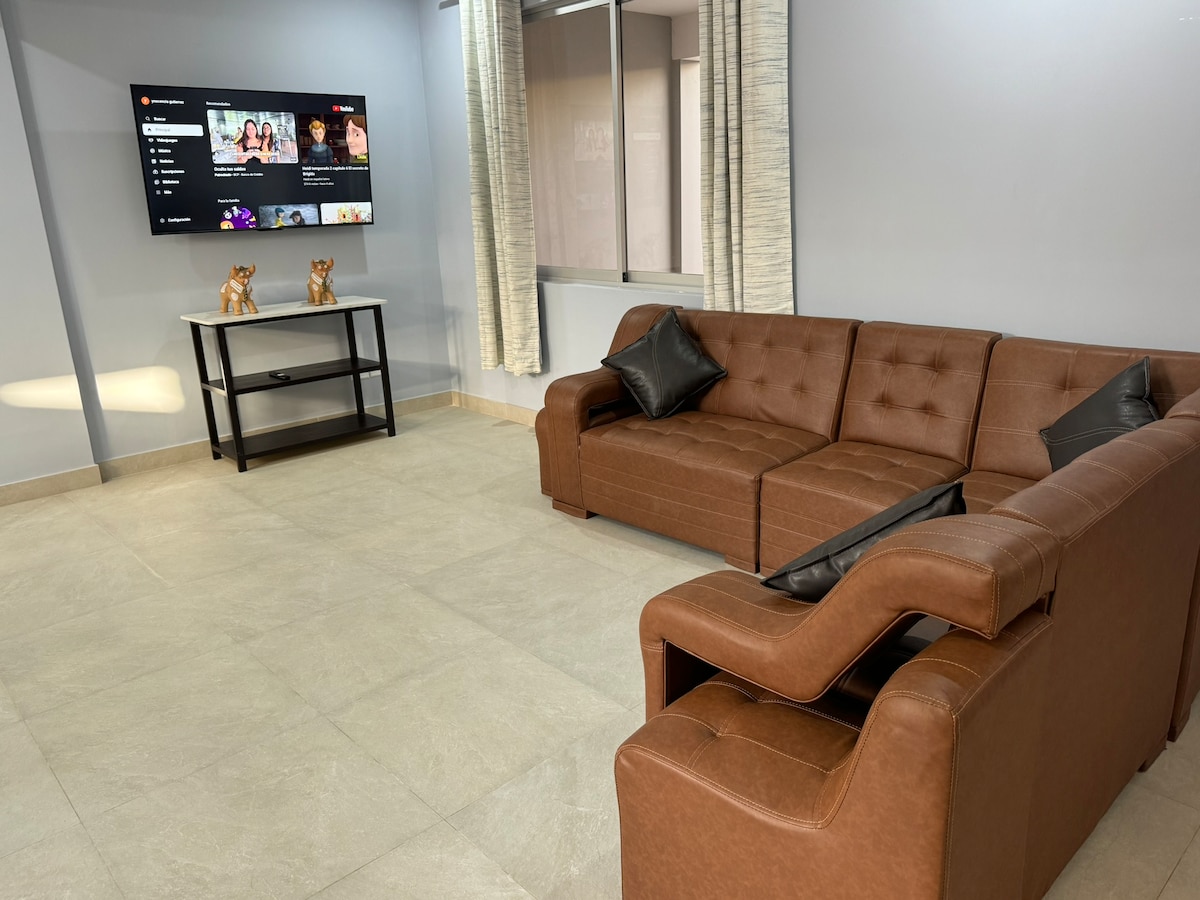 Cozy and modern apartment a few minutes from Arequipa Airport, and 4 blocks from Zamácola Market. It has a stylishly decorated living and dining room, a fully equipped kitchen, 2 comfortable bedrooms, and a TV with streaming. Ideal for travelers, small families, or short stays. Strategic location, very close to the airport. Clean, safe and ready for you to enjoy your time in the White City.