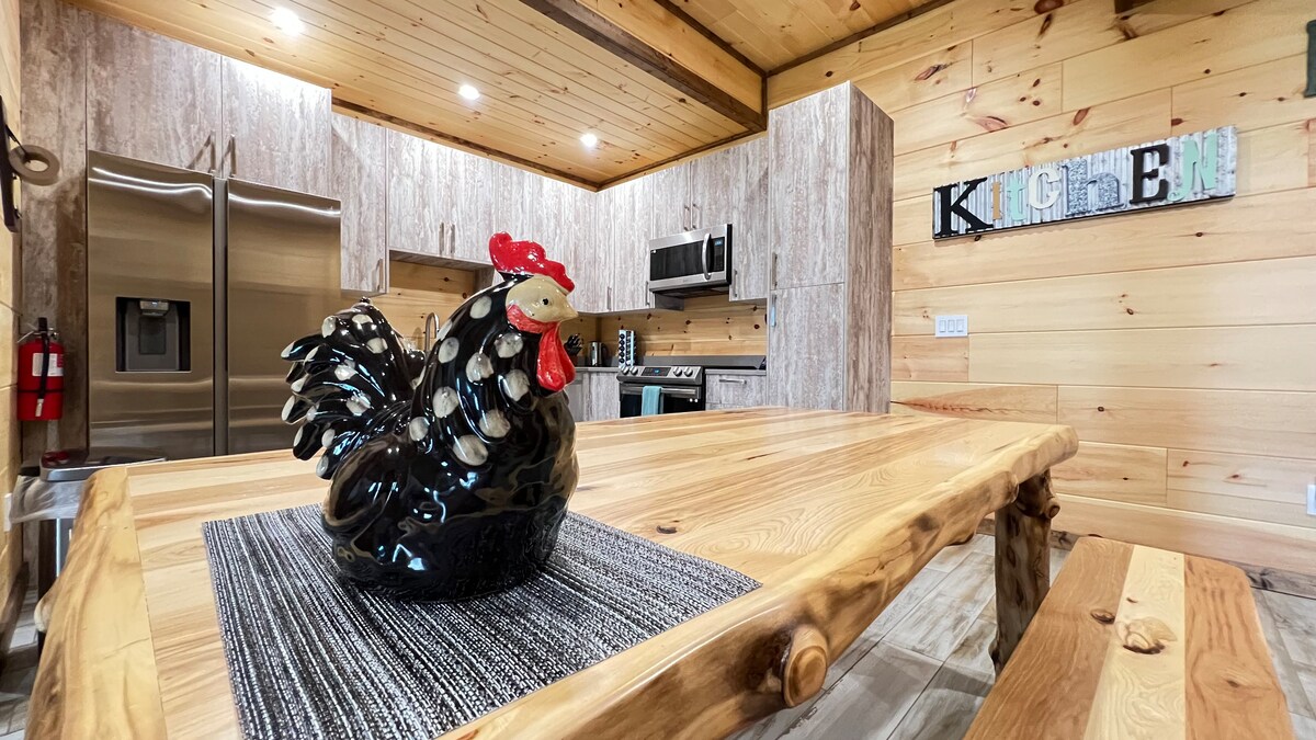 This High Lux Modern Farmhouse cabin is designed for the ultimate romantic getaway. With an oversized freestanding bathtub, a walk-in shower for two, 28-jet hot tub, and an oversized Star Window in the master bedroom, and outdoor shower, and many other amenities this cabin will leave you breathless. With no front or side neighbors, you'll feel like you have the entire mountain to yourself to relax and enjoy your time together.