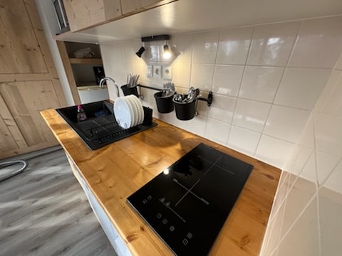 Welcome to our "Ti' Nid", a charming little 20 m2 burnt wood chalet. Its 30 m2 terrace with its private sauna faces the Belledonne chain. Located on the Plateau des Petites Roches in the heart of the Parc de Chartreuse at 1000 m altitude in a beautiful natural setting. Enjoy the calm of the place and an immersion in nature. A must-see place for lovers of hiking and sports activities. Cyril offers yoga, mediation, and sports sessions on request.