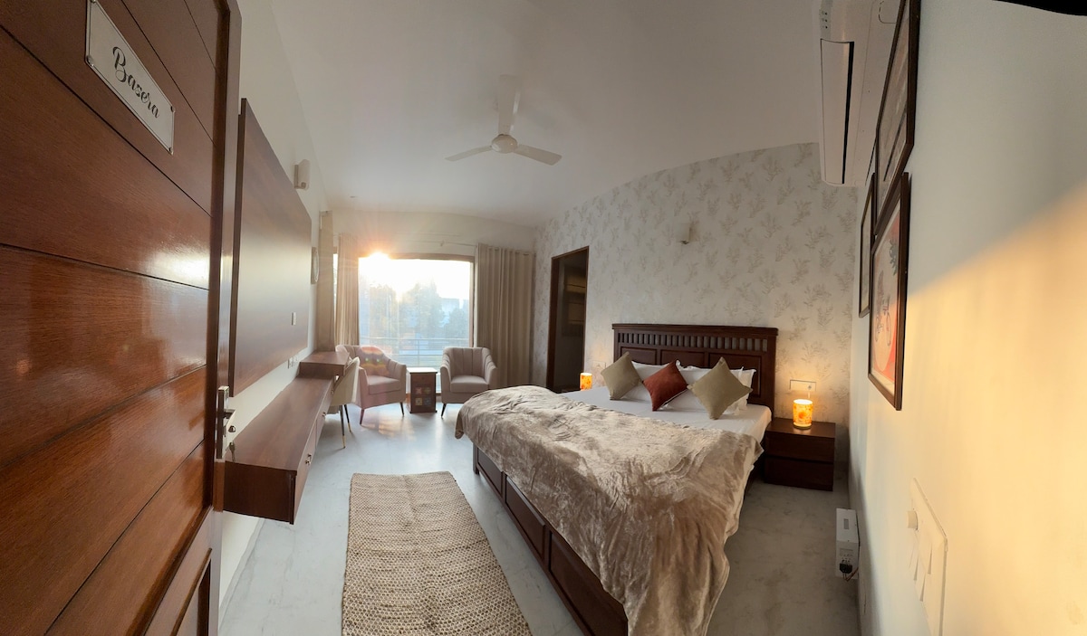 This room offers everything you need for a comfortable stay .The bedroom has a double bed with lots of natural light. Curl up with a book in the lush green park facing balcony or step out to enjoy the sunset at our terrace and take a relaxing stroll in one of Chandigarh's beautiful parks . Just 15 minutes away from Airport , this apartment is perfect if you're looking to explore what Chandigarh has to offer while still having easy access to all the city's amenities.