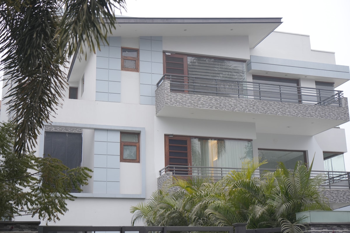 Bring your family group to this dream place with lots of room for fun, a comfortable stay with privacy. Private Swimming pool. Living hall , Keyboard piano ,access to the pool table, exercise cycle , Yoga Mat, 55 inch TV lounge, Web TVs in each bed room, canvas painting. Food Quality , Quantity Hiegene. Caretaker, Chef and cleaning stafg lives in basement area with separate entry. Venue is also suitable for bigger parties . More AC bedrooms on terrace garden for bigger groups.