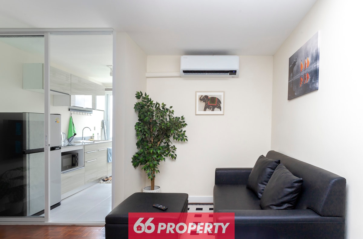A spacious studio room on “the first floor” or "ground floor" with one window, there is no natural light nor kitchen. However, it is well-loved by a long stay traveller and workation who plan to be outside a lot. The building nests in the residential area where you are able to find many street food and lots of local diners and cafes at reasonable price. A rooftop pool on the 6th floor is open all year round, you can dip and watch sunset and beautiful mountains.