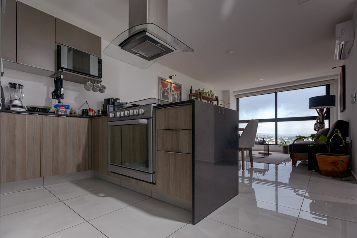 New apartment with excellent lighting, comfortable and warm. You'll love this place because it has a beautiful view of the city of Guadalajara, and the tower has spaces for rest and recreation (swimming pool, gym, rooftop). Its location in front of a light rail station facilitates mobility. The city's first block is 20 minutes away by car, a Chedraui right in front, and a small plaza on one side with a variety of services.