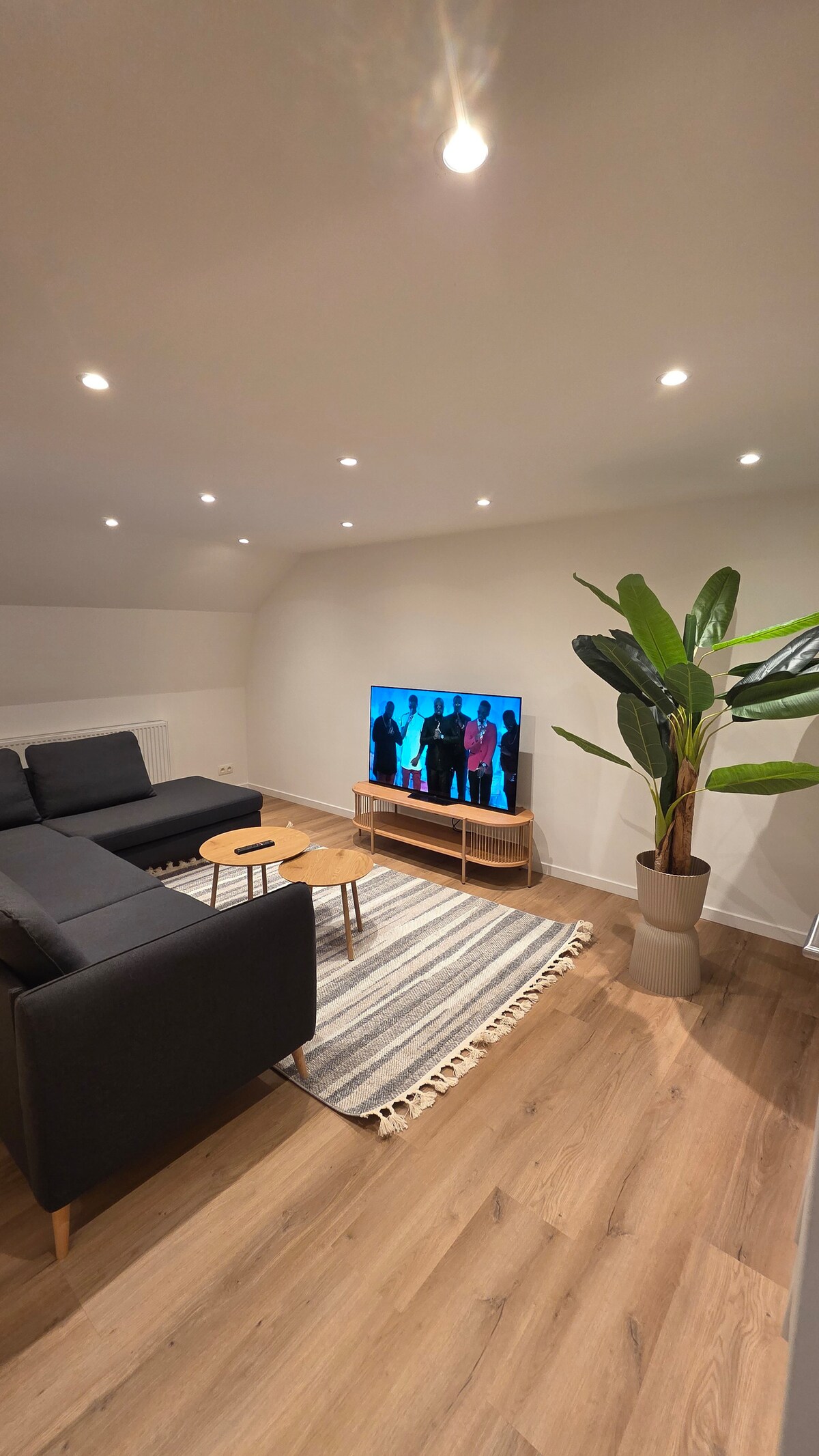 Notre duplex de style moderne vient d'être entièrement rénové et est totalement équipé. Situé en centre-ville, il reste un endroit relativement calme à l'arrière du bâtiment (magasin "créaflors"- cour arrière). Notre logement de 70m² s'organise sur 2 niveaux avec tout l'équipement nécessaire : salon, salle à manger, cuisine totalement équipée, grande chambre avec coin lecture, salle de bain avec baignoire et douche. Il est idéalement situé au centre de Couvin avec parking gratuit à côté.