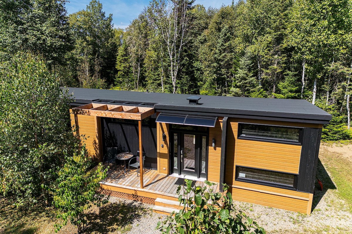 Escape to this tiny house perched atop a mountain and take in the panoramic views of the surrounding valleys and mountains through its glass walls. Unwind in the spa, available year-round, while enjoying the most breathtaking sunsets. Discover this hidden gem in the heart of the Canadian boreal forest, combining comfort and functionality in every season. An intimate and unforgettable experience, just moments away from the legendary city of Québec, a UNESCO World Heritage Site.