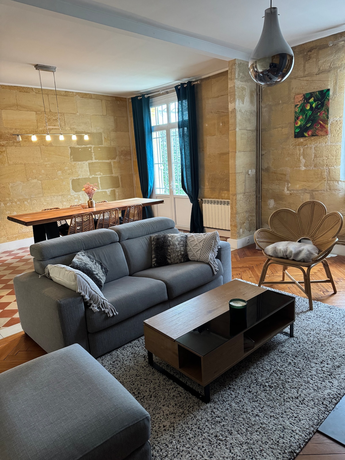 Former 19th century master glassmaker's workshop. Services ++ House located in one of the best neighborhoods. Quality shops and transport. Ideal location for visiting Bordeaux AND strategic for wine and the ocean. Living room 60 m2 volume++ exceptional fluidity. 4 bedrooms, 2 shower rooms. Basement: atypical office/bedroom :) SOUTH-facing garden with street access, salt pool, gym. Party/noise prohibited, thanks. Atypical/Authentic/Comfort/Modernity. Experience guaranteed :)