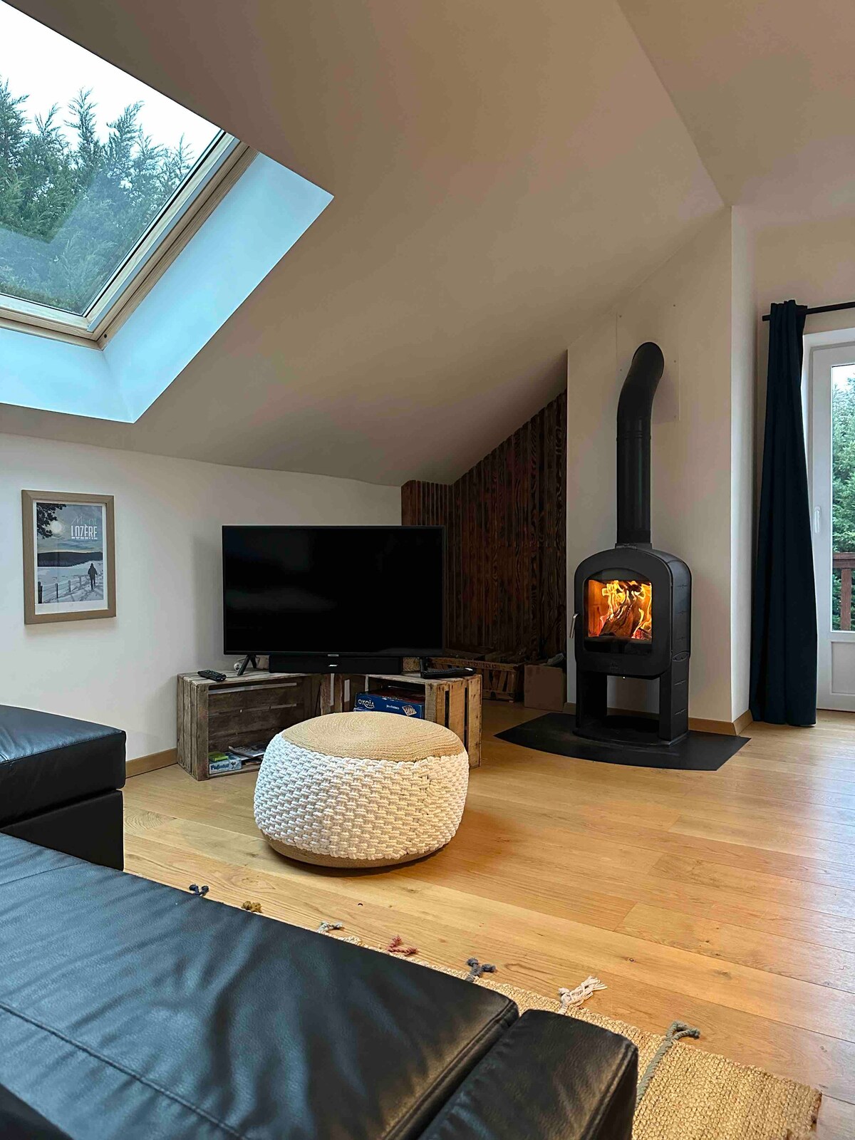 Bright and freshly renovated attic of 60m2, this pleasant relaxing cocoon is idyllic for a weekend or a peaceful week at the bottom of Mont Lozère. The Stevenson road and shops are 1km away. (Grocery store, bakery...) Two bedrooms and a large living room compose this apartment fully equipped: Oven awaiting delivery, last generation washing machine, Italian shower, ceramic hob, leather sofa bed, wood stove.
