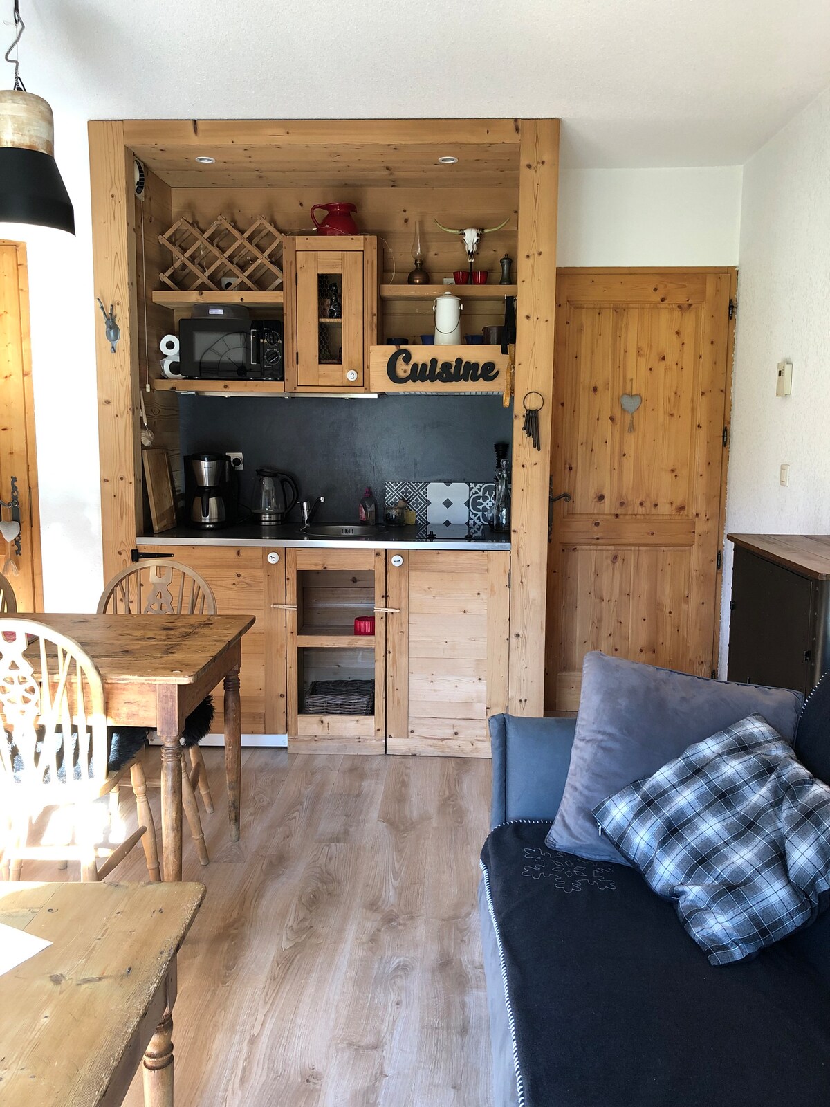 We offer a spacious, completely renovated studio for 4 people in the center of Châtel, located 100 m from the Superchâtel lift. The studio consists of a living room with fully equipped kitchen, dining area and sitting area (including a retractable bed); an entrance with mountain corner (two beds), a bathroom, a separate toilet, a clearance separating the living area from the mountain corner and a balcony with unobstructed mountain views. Pets welcome upon request. Multi-pass available.