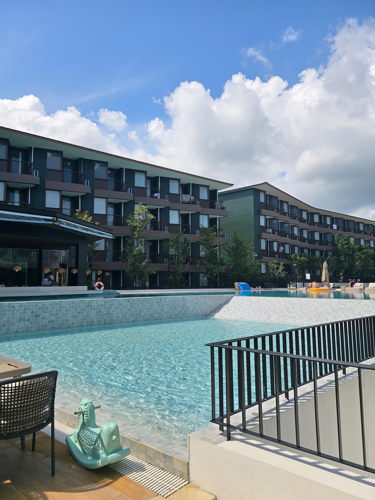 This cozy seaside apartment has beautiful pool view and is fully kitted with everything you need. It is furnished very simplistic and all newly renovated micro cement. The bed is brand new and top of the range with a new bed topper, sheets, pillows, towels, Samsung flatscreen 65in smart tv (all above bought new in January 2025.) The included facilities: - Swimming pool - Playground - Tennis court - Fitness, yoga, sauna room. - Basket court - Lots of parking - Security system guard,CCT
