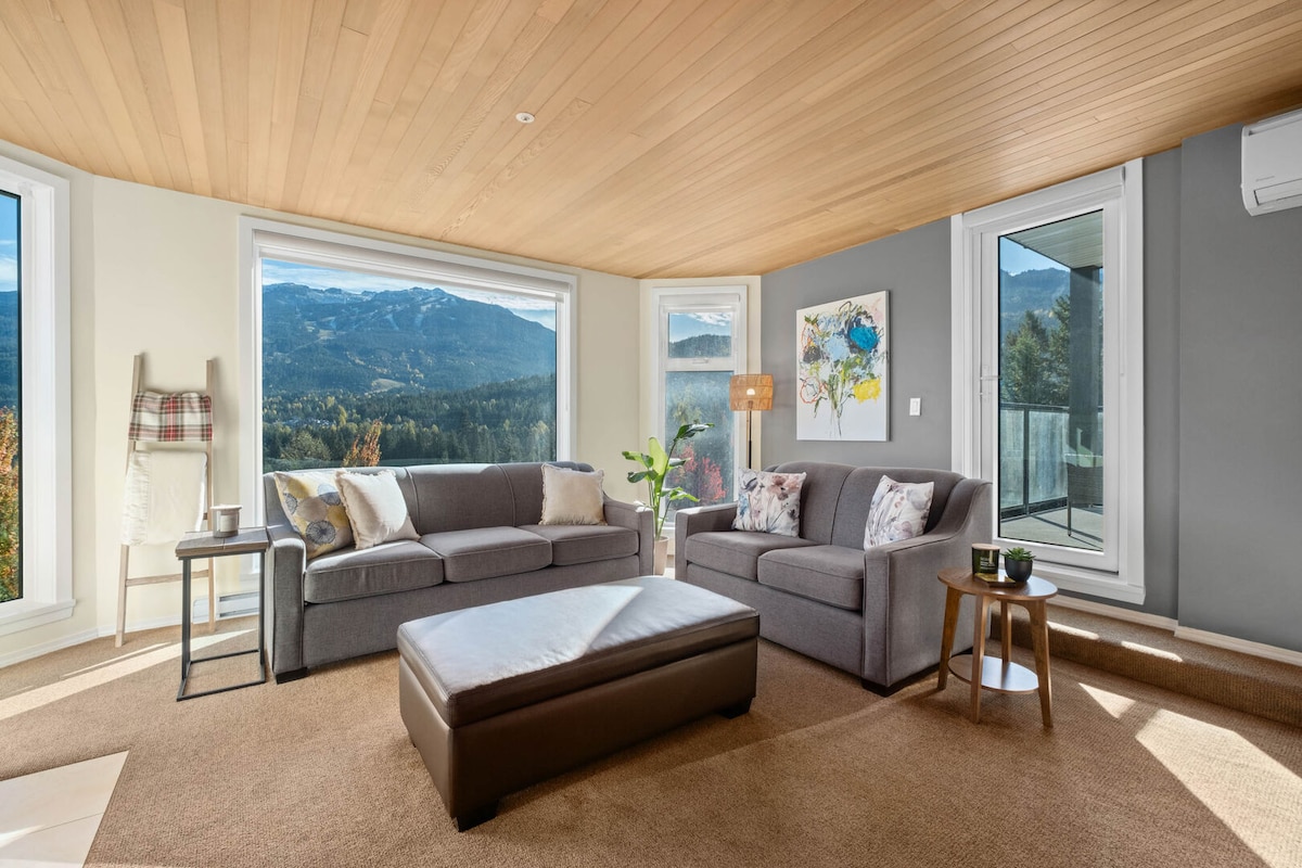 Welcome to your mountain oasis. A 1 min walk from the Blackcomb lift! Our modern condo is a bright, spacious 1 bedroom with wrap around windows for perfect tree-lined and mountain views. Look right up Whistler mountain while sipping coffee from your kitchen table! The suite has it all: - king bed - sofa bed - full kitchen - soaker jet tub - Keurig - Bose speaker - central A/C - upgraded July 2025 The building has a gym, laundry, pool and outdoor hot tub.
