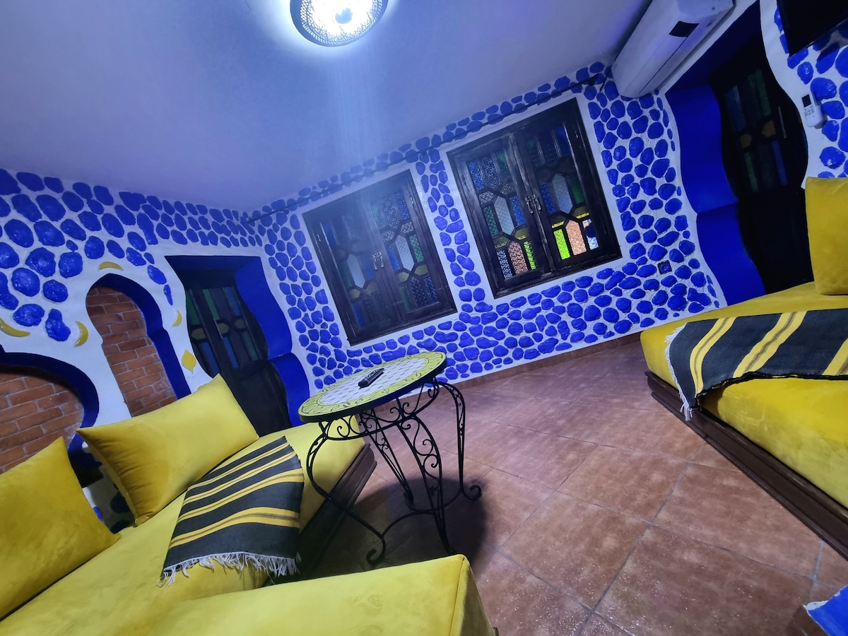 A non-shared house, which consists of two levels : the ground floor consists of a kitchen, a bathroom and a shower .The first class there is a traditional authentic du salon, as well as a smart TV and air conditioning . There are also two bedrooms, the first with a double bed and the second with two single beds . The house is also close to all tourist places by only 500 meters